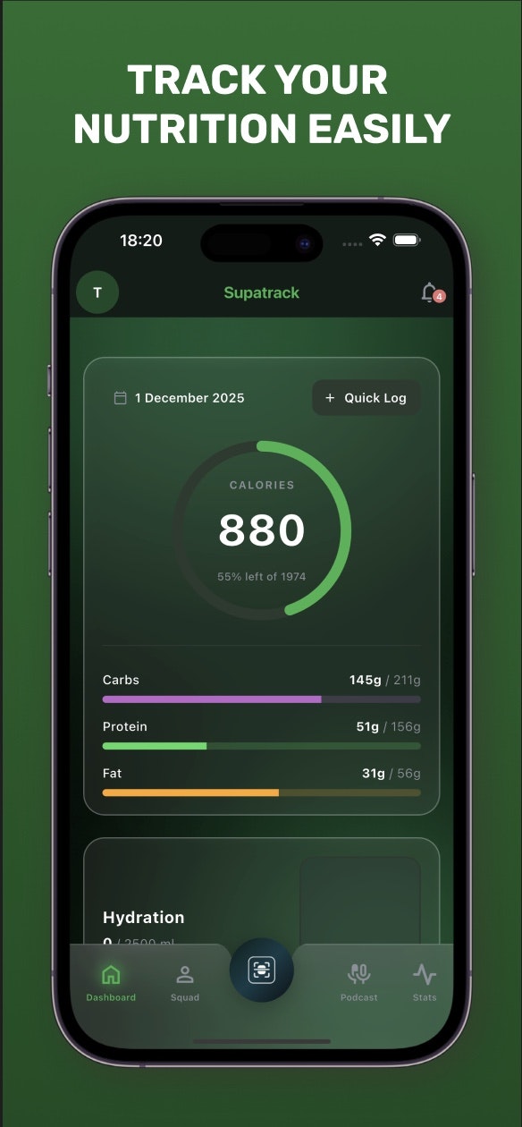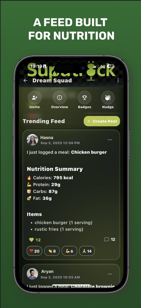 「Supatrack」は、健康維持を孤独に感じさせないために作られた、ソーシャルな栄養トラッキングアプリです。ユーザーは仲間と共に挑戦し、励まし合いながら目標に向かうことで、持続可能な習慣を築くことができます。