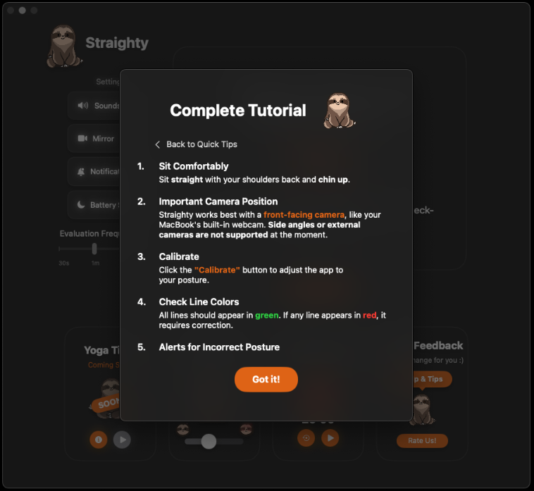 Your AI sloth companion for perfect posture