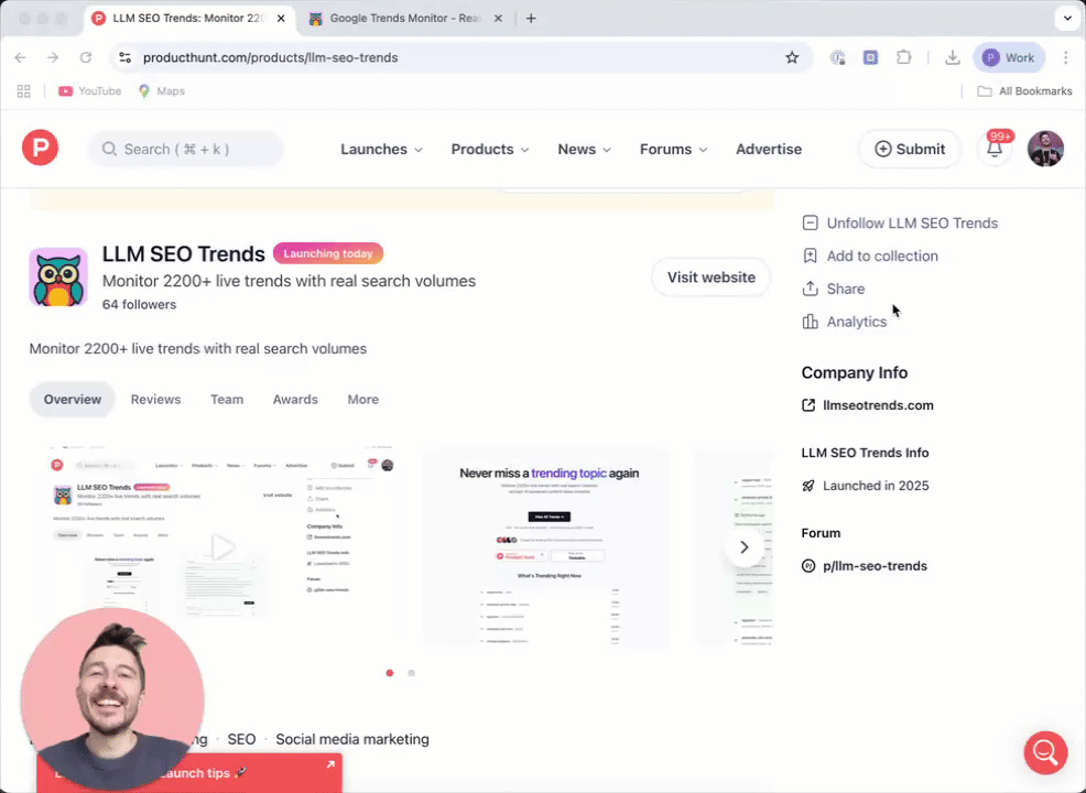「LLM SEO Trends」は、Googleのトレンドを簡単に把握し、ChatGPTを活用してその意味を理解し、コンテンツやSEOのアイデアを生成するツールです。ユーザーはこのツールが、リアルなデータに基づいて迅速に意思決定を助けることを評価しています。