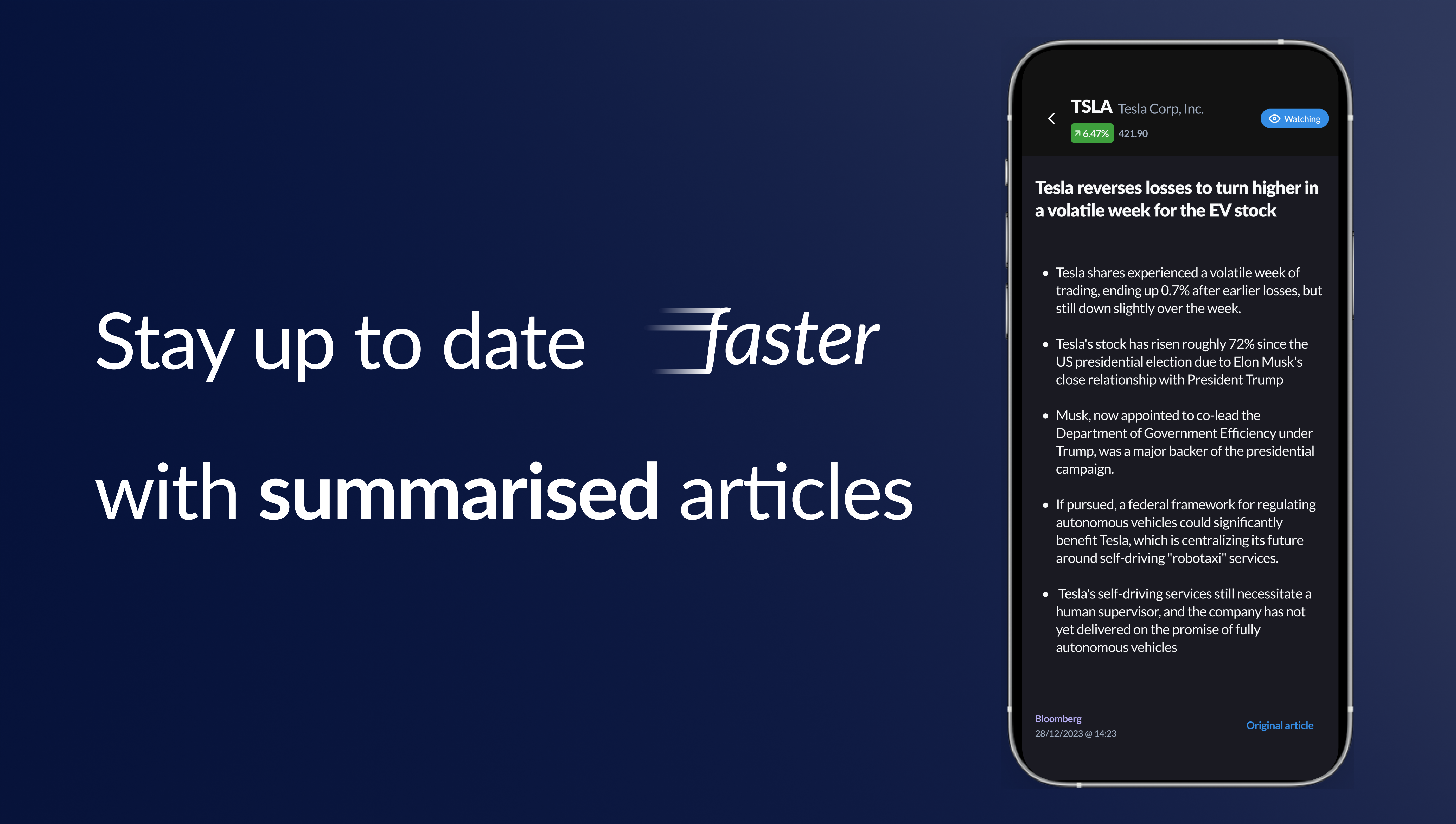 「SumFin」は小口投資家向けに設計されたAIを活用したニュースまとめアプリで、信頼できる情報源から金融ニュースを集約し、簡潔にまとめて提供します。ユーザーからは、個別の関心に応じたパーソナライズされた更新やトレンド情報が好評で、情報の過多を防ぎながら効率的に市場の動向を把握できる点が評価されています。