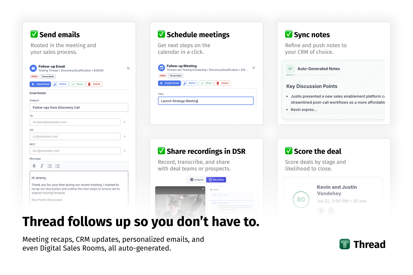ユーザーたちは、Threadが他のツールと異なり、営業活動に直接役立つ実用的な機能を提供している点を高く評価しています。特に、CRMとの瞬時の同期や自動フォローアップメールの生成など、営業プロセスをスムーズにする機能が支持されています。また、プロダクトの開発者たちは、ユーザーからのフィードバックを歓迎し、さらなる機能改善に意欲を示しています。