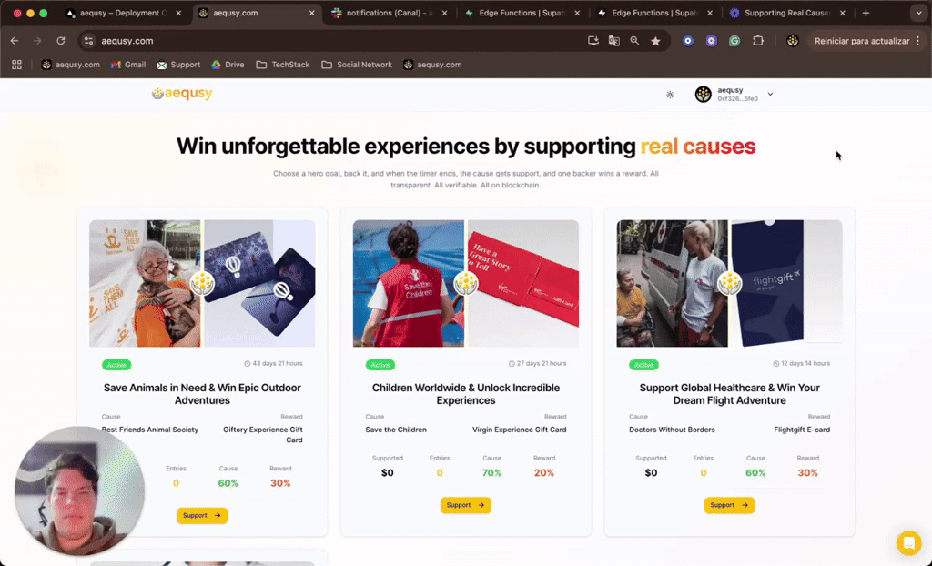 「Aequsy」は、寄付を通じて楽しさと透明性を提供するプラットフォームで、ユーザーは認証された原因に寄付し、人生を変える体験に参加できるという特徴があります。
