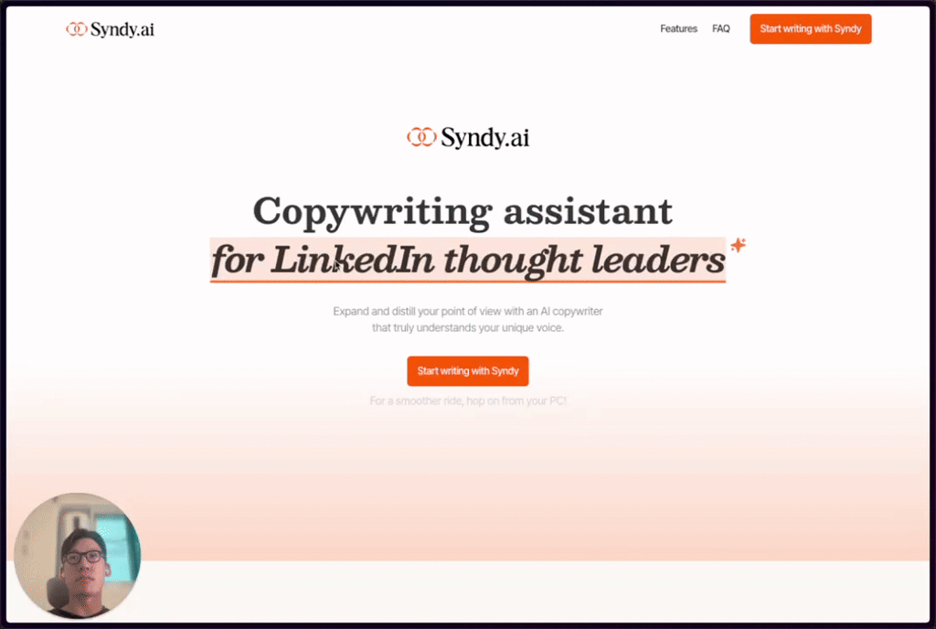 「Syndy.ai」は、LinkedIn向けに設計されたAIライティングツールで、ユーザーが自身の声を保ちながら、迅速かつ効率的にコンテンツを作成できることを目的としています。