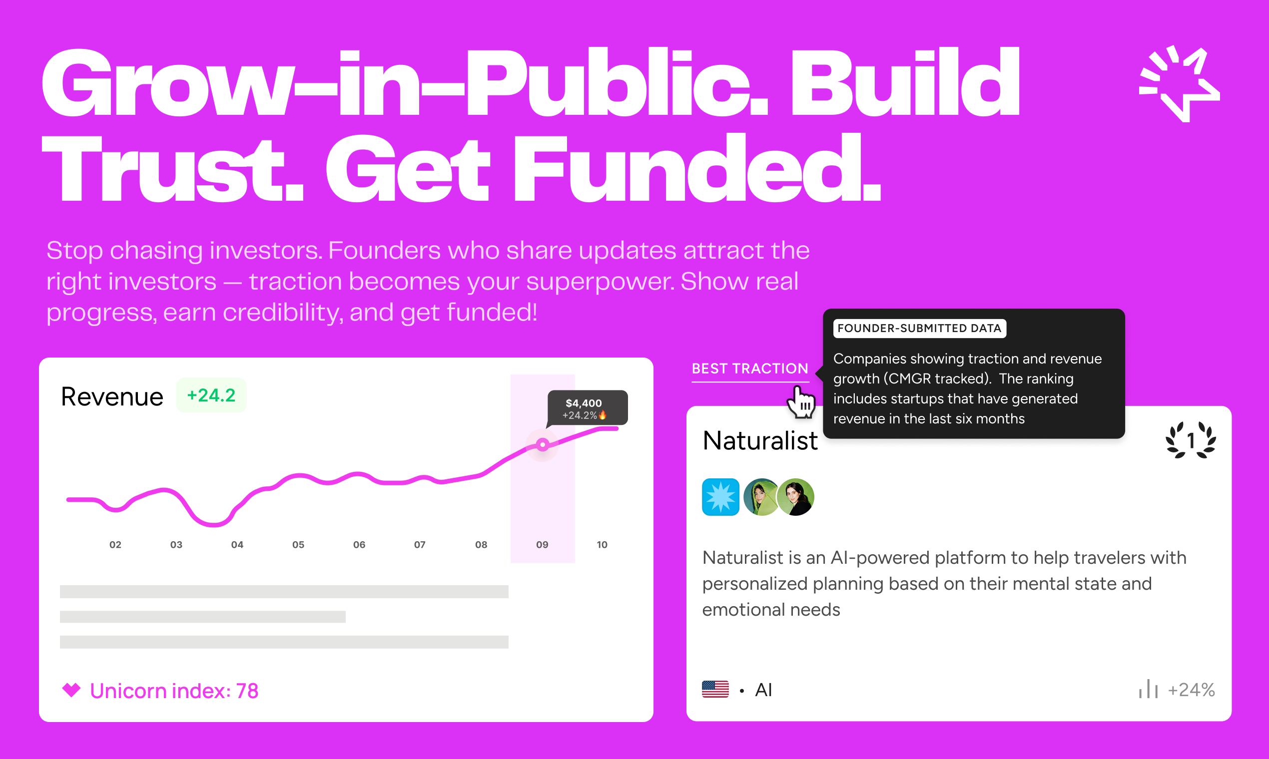 Grow, earn Sparks, and get discovered by VCs