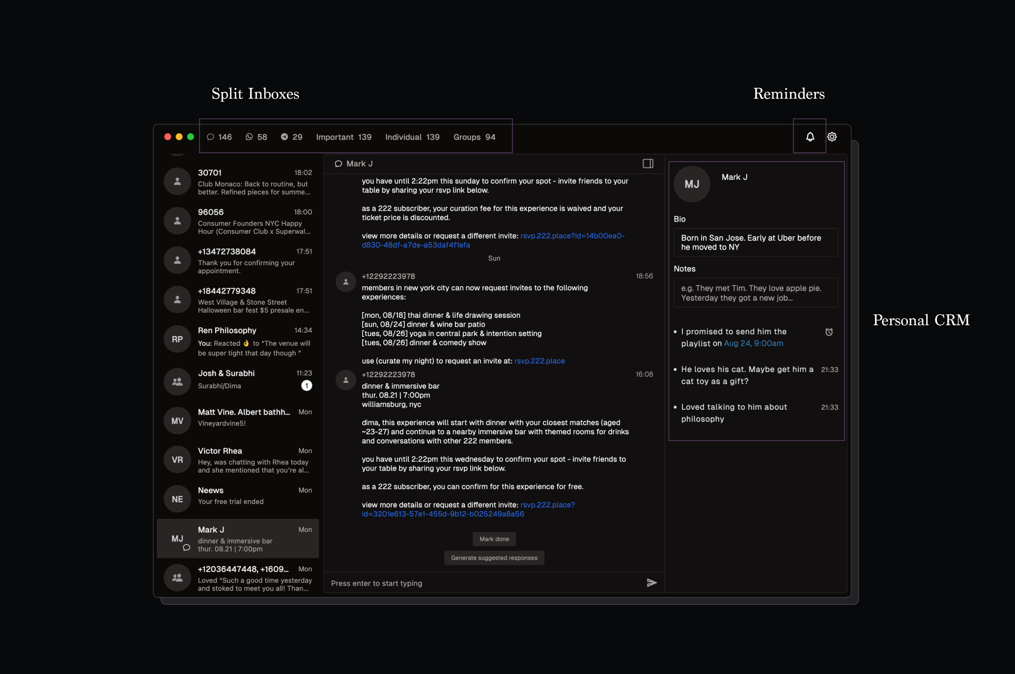 Whatsapp, Telegram, iMessage + AI + personal CRM