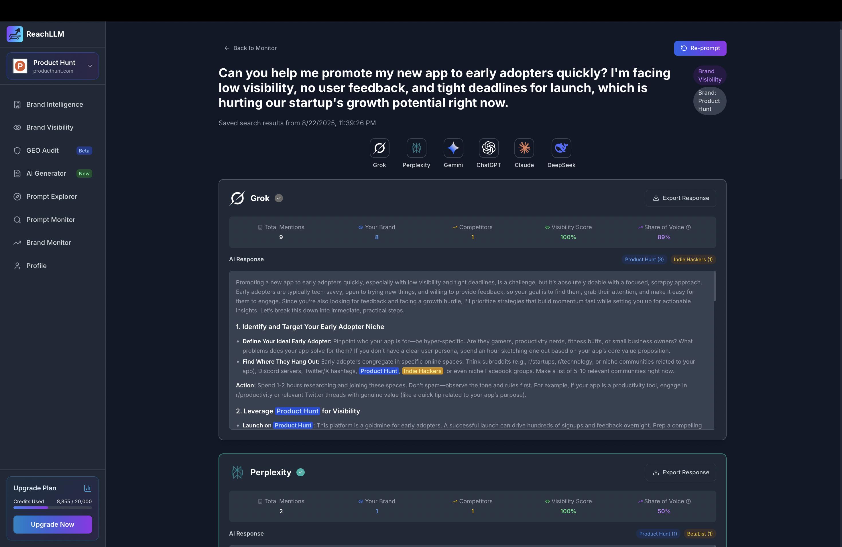 ユーザーからは、LLMにおけるブランドの可視性を具体的に追跡できる点が高く評価されており、AI検索が新たなSEOのフロンティアとして注目されている中で、ReachLLMがそのギャップを埋める重要なツールであるとの意見が多く寄せられています。また、製品の改善を期待する声や、特定のプラットフォーム向けのコンテンツ生成機能についての質問もありました。