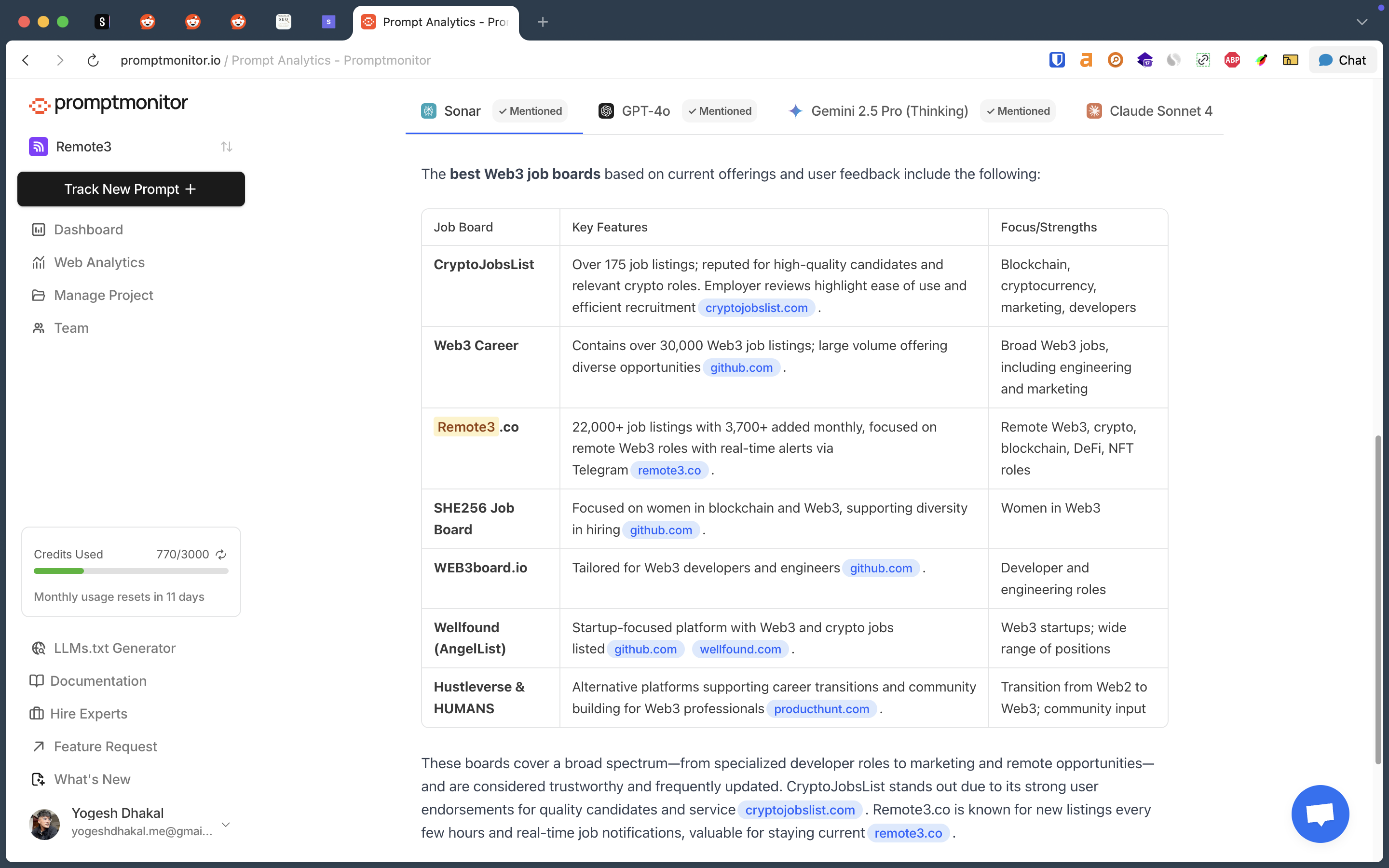「Promptmonitor」は、AI検索最適化ツールで、ブランドのAI内での可視性を追跡・改善することを目的としています。新しく、手頃な価格プランやウェブサイトとAIクローラーの分析機能、チームコラボレーション機能が追加され、ユーザーからはその使いやすさや新しいUIが好評です。