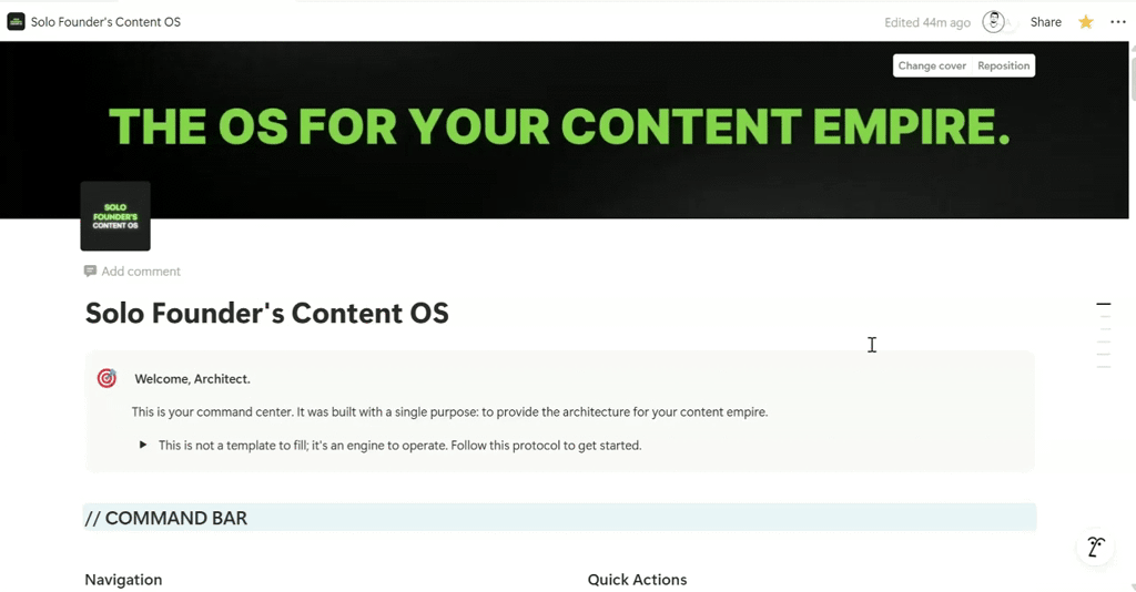 「Solo Founder's Content OS」は、散らばったメモやアプリから解放されるための、コンテンツ運営のための完全なオペレーティングシステムです。ユーザーは、効果的なコンテンツ戦略を立てるための「AIプロンプトボールト」や150以上のフレームワークを活用でき、計画から実行までの一貫したサポートを受けることができます。
