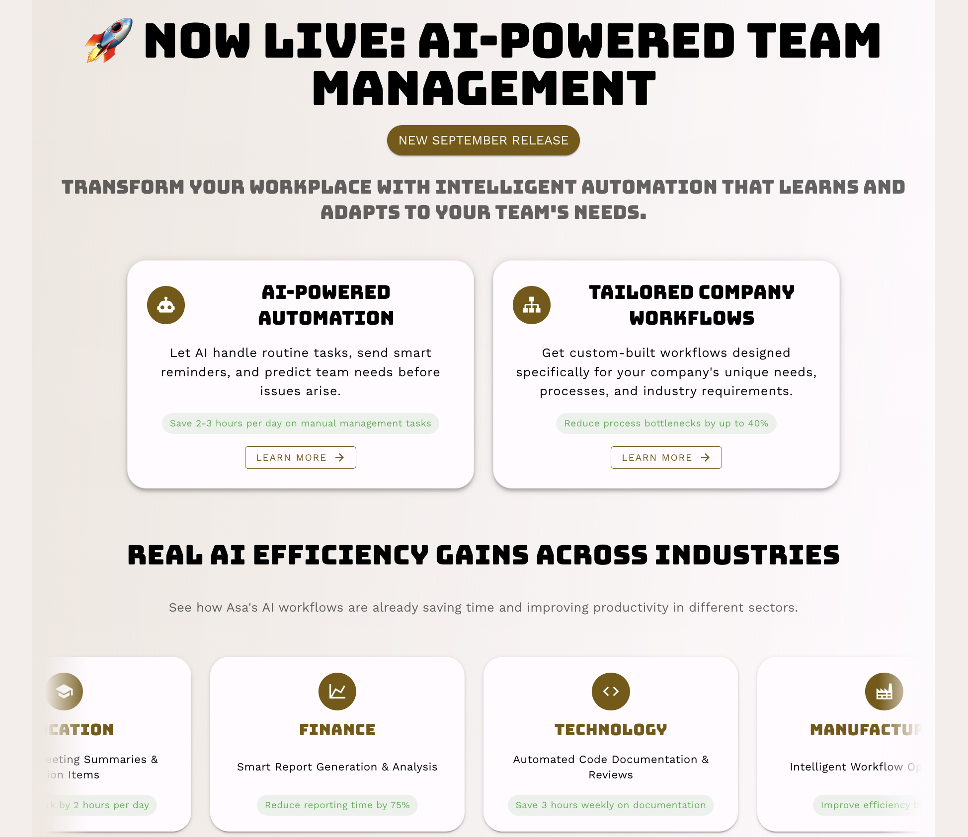 Asa.Teamは、リモートおよびハイブリッドワークに特化したチーム管理プラットフォームで、2.0バージョンではダッシュボードのデザインを一新し、カンバンスタイルのタスク管理やメンタルウェルビーイングのトラッカー、AIワークフローの自動化機能を追加しました。