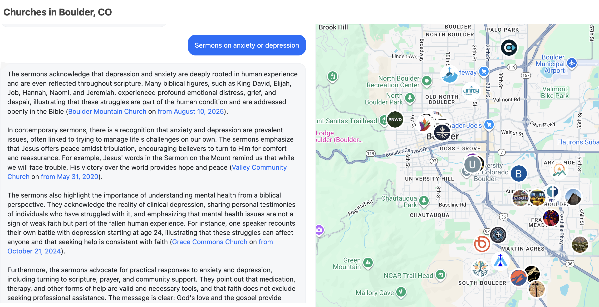 「Pastors.ai」は、ユーザーが地域の教会の説教や価値観をAIを使って検索できるチャットボットです。