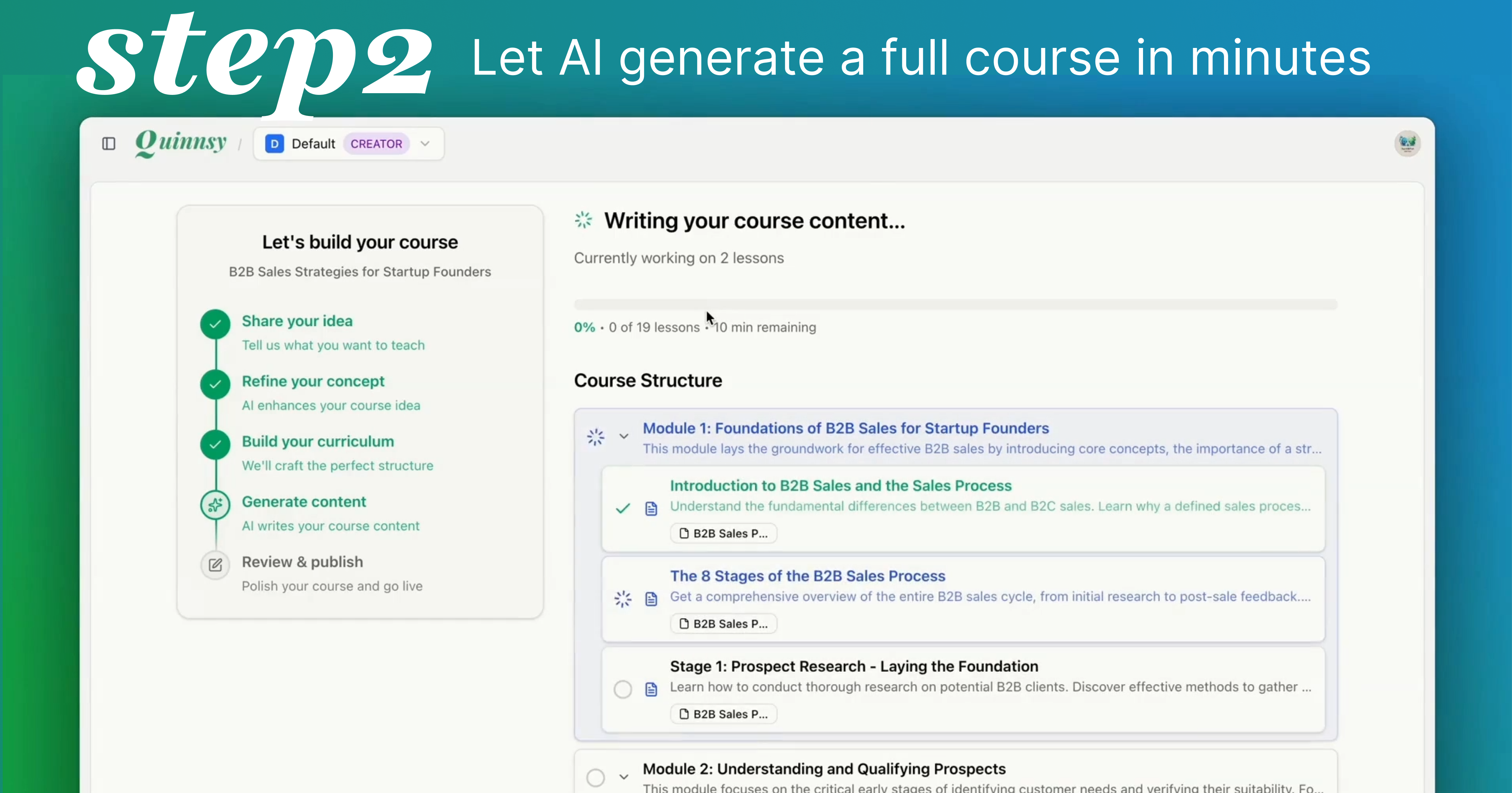 「Quinnsy」は、散らばったコンテンツをわずか5分で整理されたオンラインコースにまとめるAIツールです。多くの専門家はすでに内容を持っているものの、構成に時間がかかるという問題を解決することを目的としています。