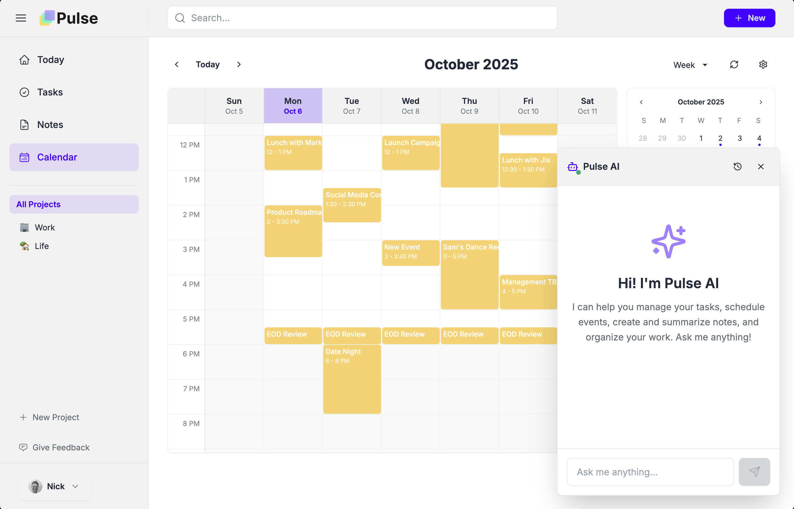 「Pulse」は、タスク、ノート、カレンダーを一元管理できるプロダクトであり、複数のツールを使い分ける煩わしさを解消することを目的としています。
