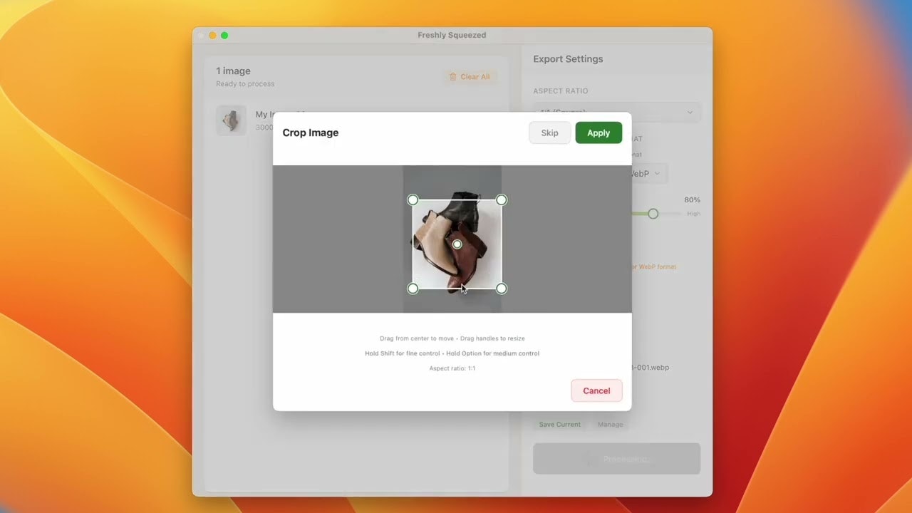 「Freshly Squeezed」は、画像のリサイズ、トリミング、最適化、エクスポートを簡単に行えるmacOS専用アプリで、特にデザイナーや開発者、Eコマースマネージャーなど、画像を扱う職業のユーザーから高く評価されています。