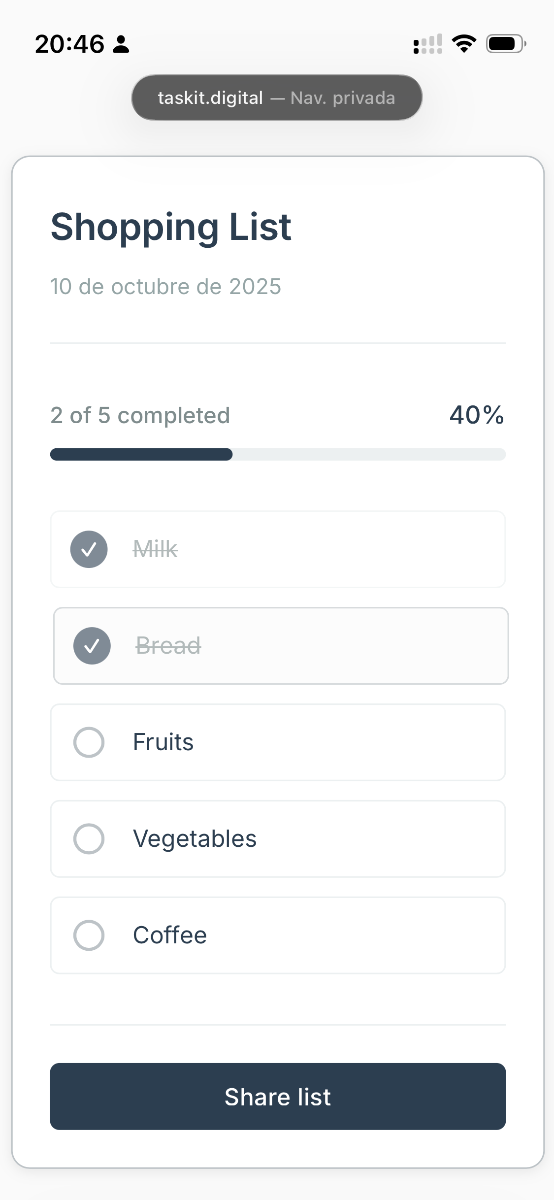 「Taskit」は、シンプルで迅速なタスクの共有を実現するツールで、ユーザーは煩わしい登録やサインインなしで、瞬時にリストを作成し、共有できます。タスクを入力しボタンをクリックするだけで、専用のURLが生成され、他の人もそのリンクをクリックするだけでリストを確認可能です。