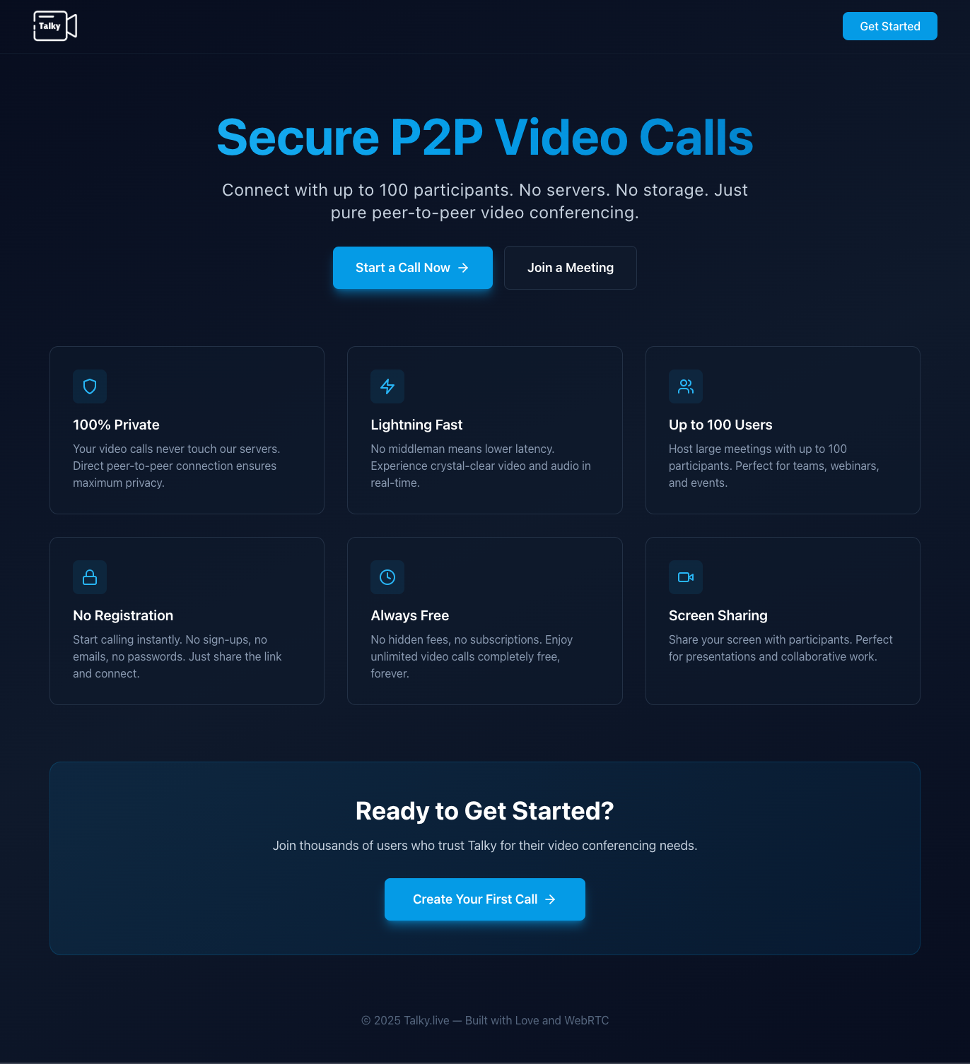 「Talky」は、シンプルで迅速、かつプライベートなビデオ通話アプリで、ユーザーはアカウントを作成せずに即座に通話を開始できることが特徴です。全ての通信はピアツーピアで暗号化されており、画面共有やカスタムルームのホスティングも可能です。