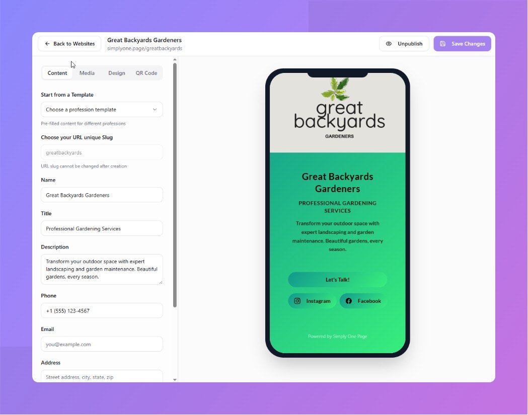 「Simply One Page」は、スキルを持ちながらデジタルプレゼンスが乏しい小規模事業者や個人事業主向けの、シンプルなワンページサイト作成ツールです。ユーザーはQRコードを使って簡単に顧客とつながることができ、5分以内に魅力的なサイトを作成できます。