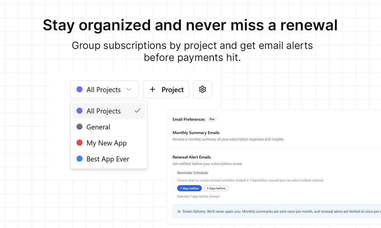 「StackBill」は、SaaSツールのサブスクリプション管理を簡単に行えるアプリで、月々の支出を追跡し、プロジェクトごとにサブスクリプションを割り当てることができます。