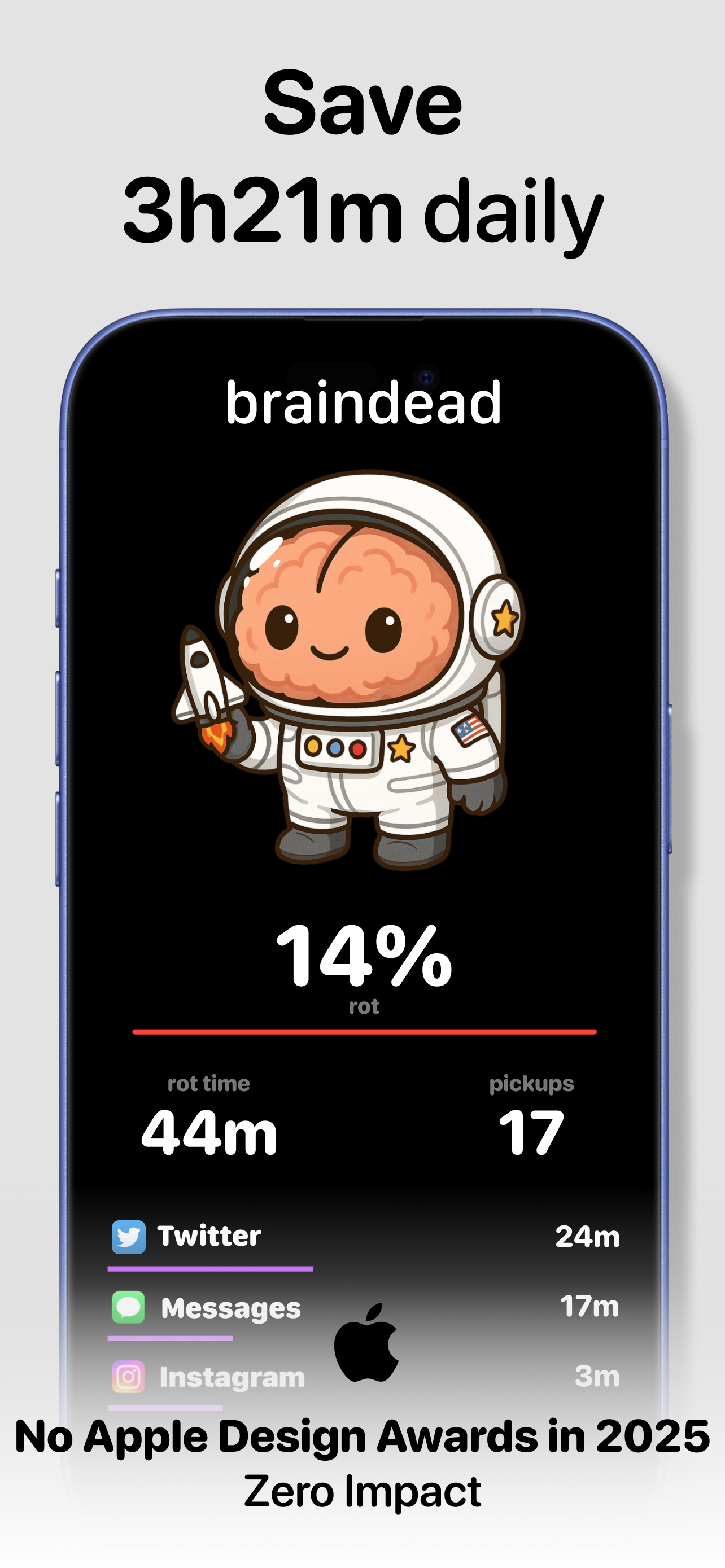 「braindead」は、ユーザーの平均スクリーンタイムが12時間に達したことから、家族のために開発されたアプリです。特にリーダーボード機能が魅力的で、他者との競争が励みになり、家族内での利用が好評とのことです。