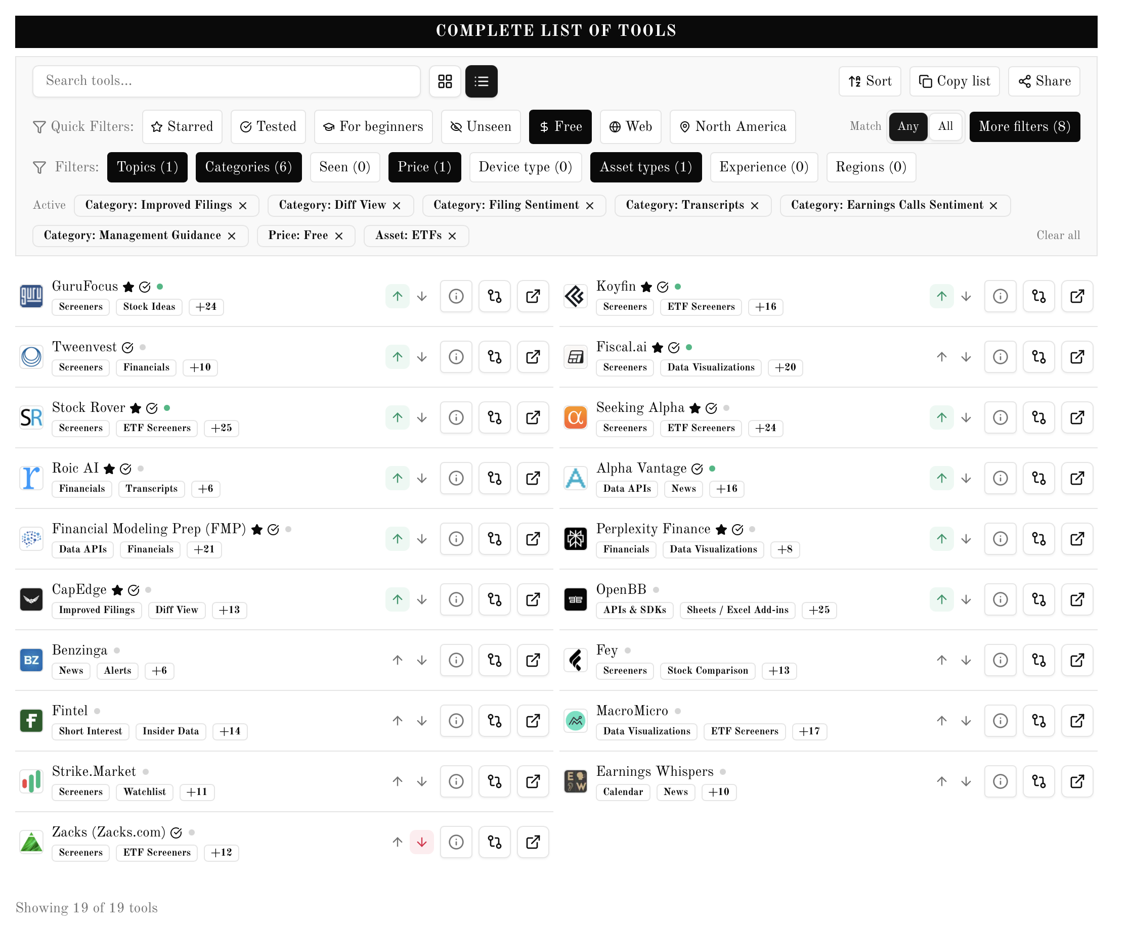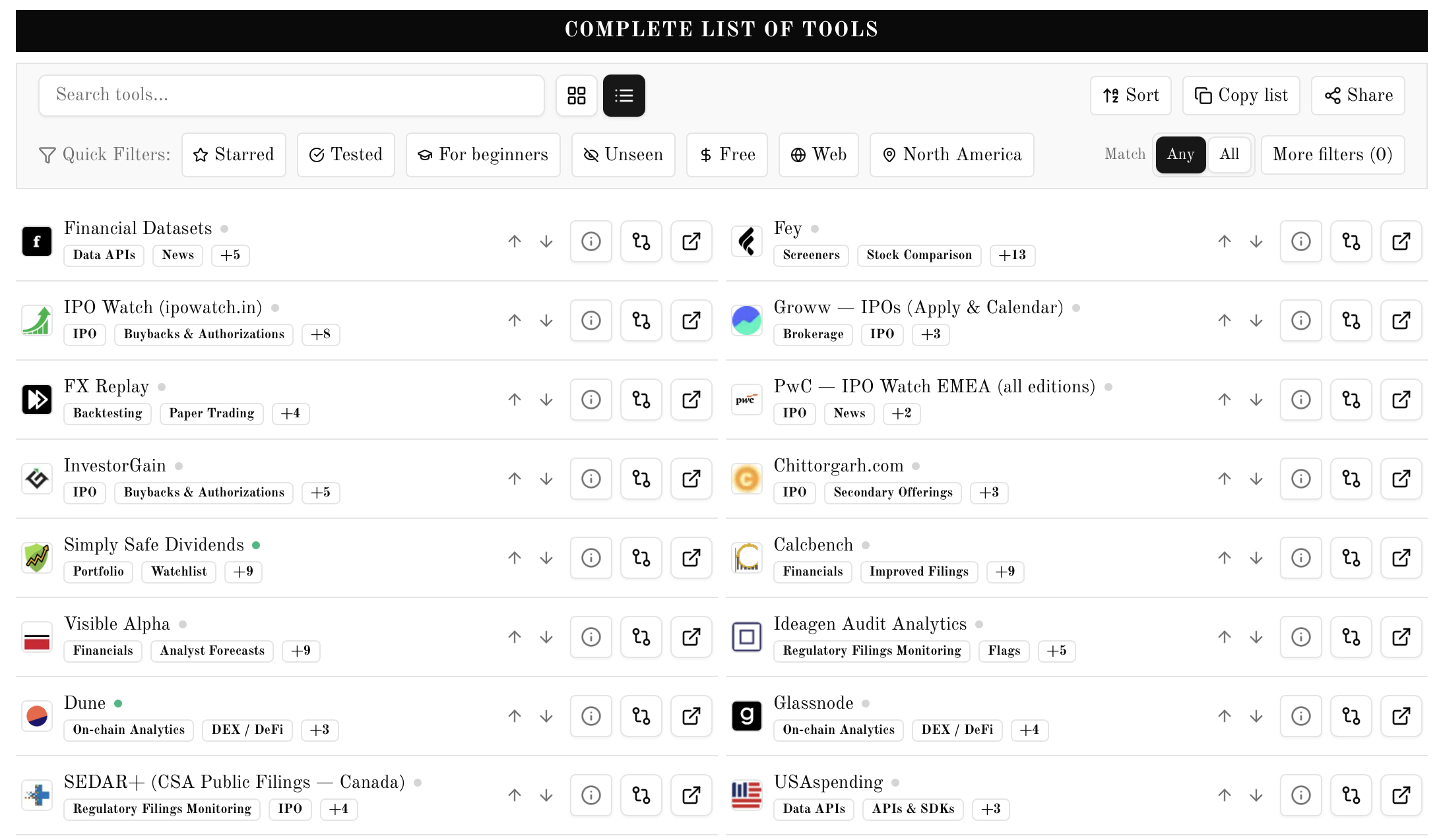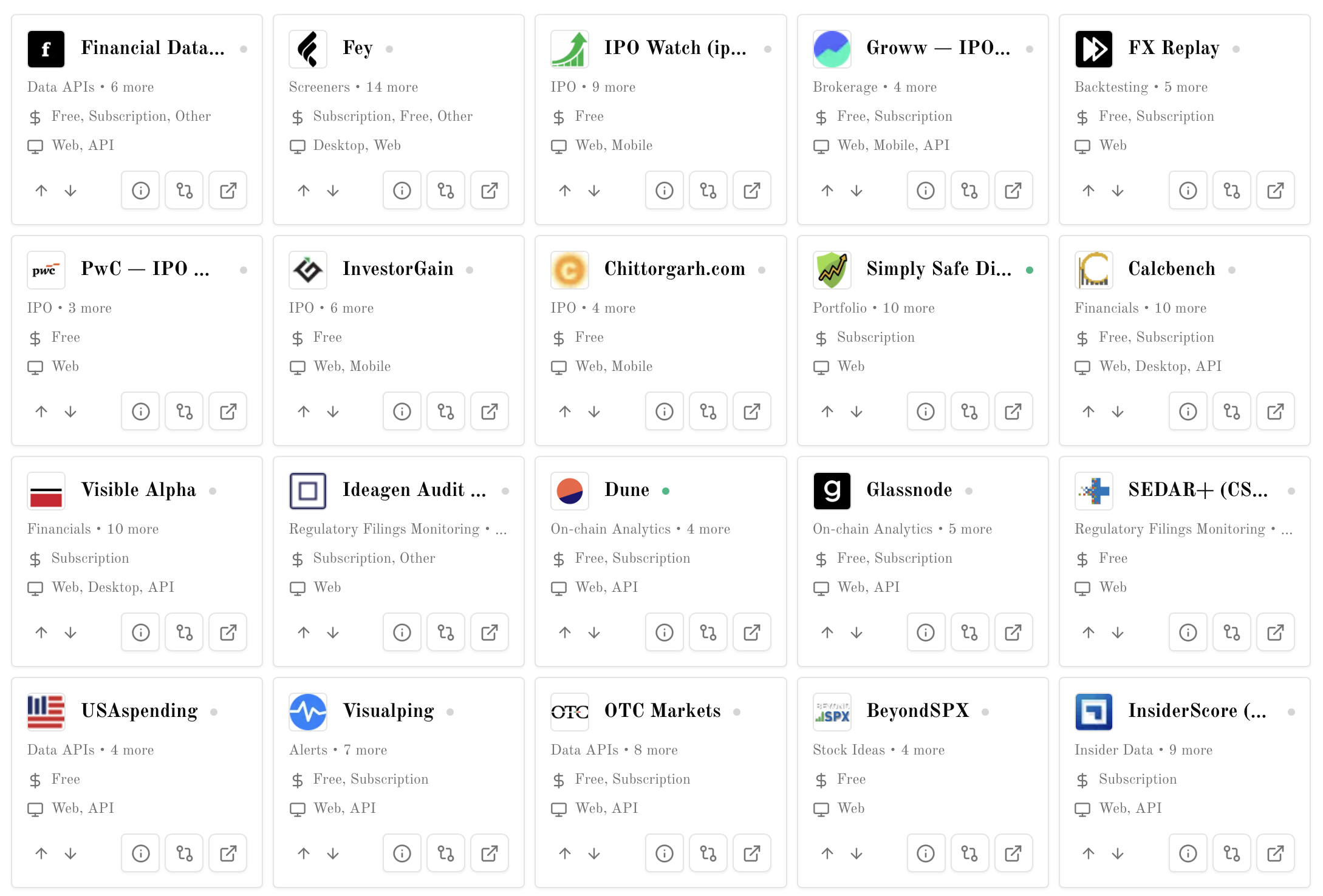 「Find My Moat」は、投資ツールをカテゴリー別にフィルターし、お気に入りを投票できるオープンデータベースで、投資家が優れたリソースを見つけやすくすることを目的としています。