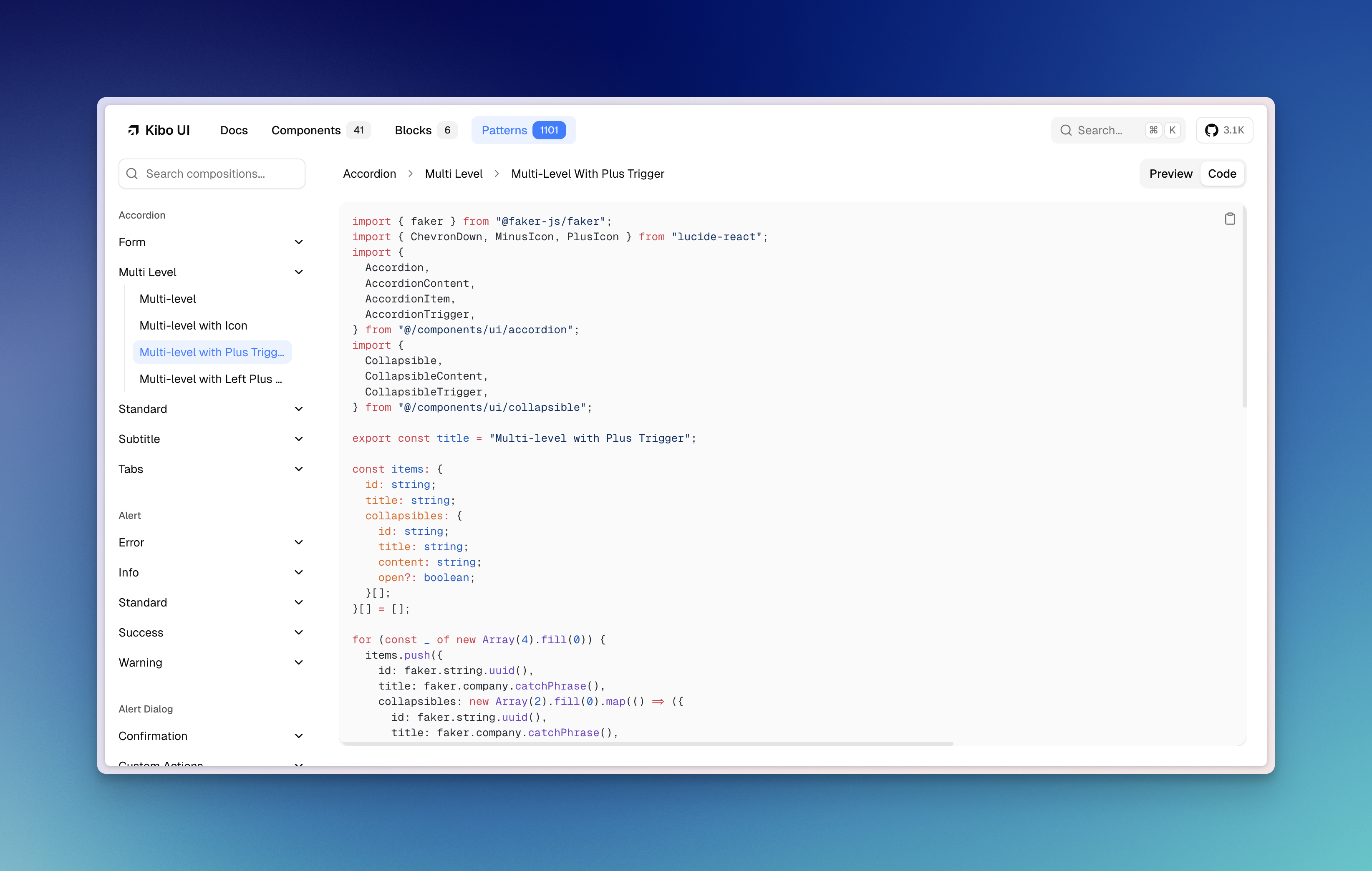 「Kibo UI Patterns」は、無料でオープンソースの高品質なコンポーネントを提供するプロダクトで、特に1,101のコピー可能なデザインパターンが追加されたことで注目を集めています。