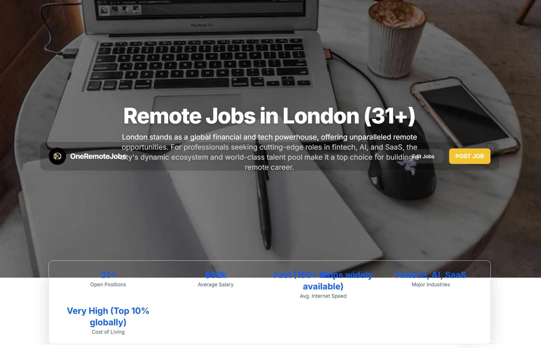 OneRemoteJobsは、質の高いリモートジョブに特化した求人プラットフォームであり、すべての求人が手作業で審査されているため、ユーザーはスパムを避けて本物の仕事に集中できます。ユーザーは、アメリカ、イギリス、インド、オーストラリアなど、世界中のリモート求人に無料でアクセスでき、サインアップや料金なしで応募が可能です。
