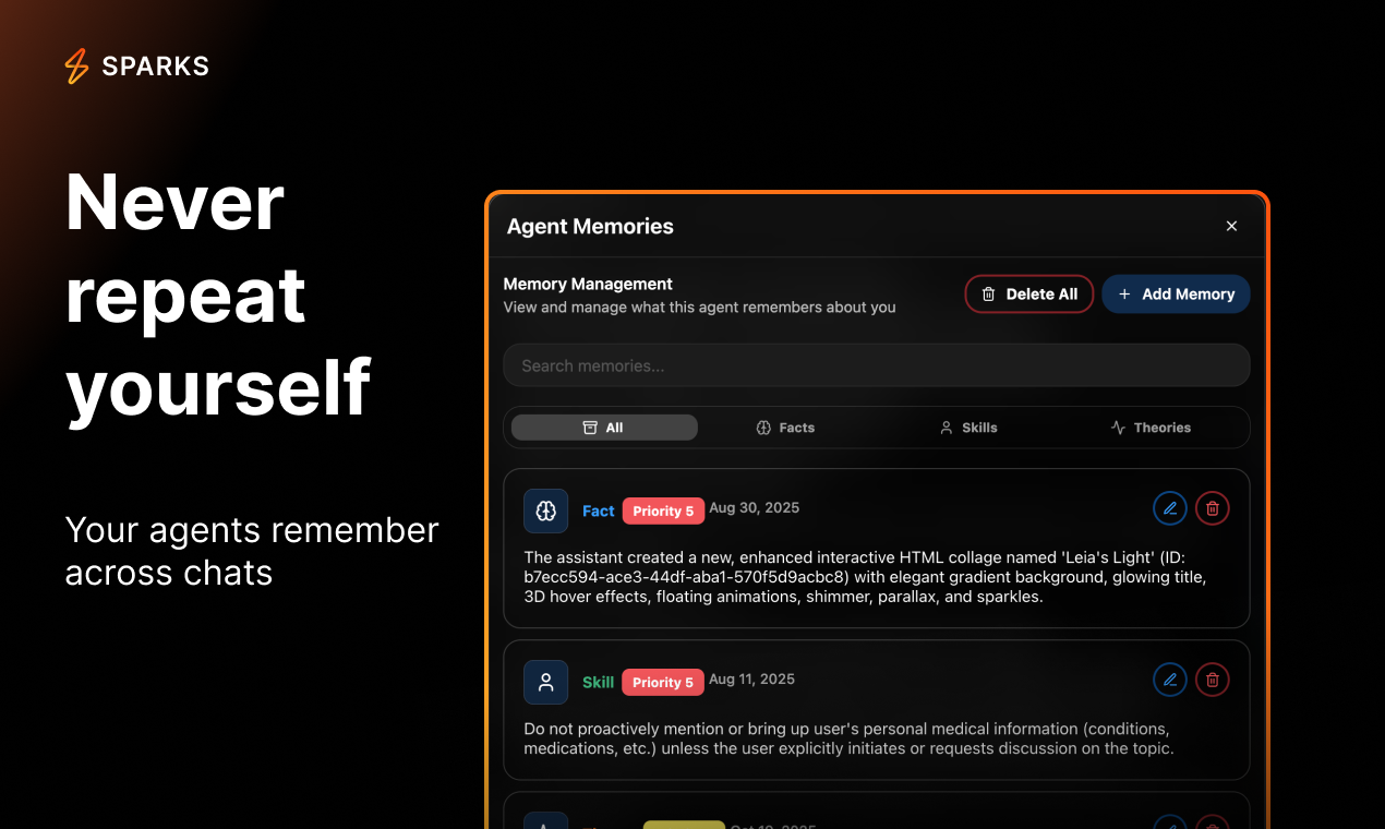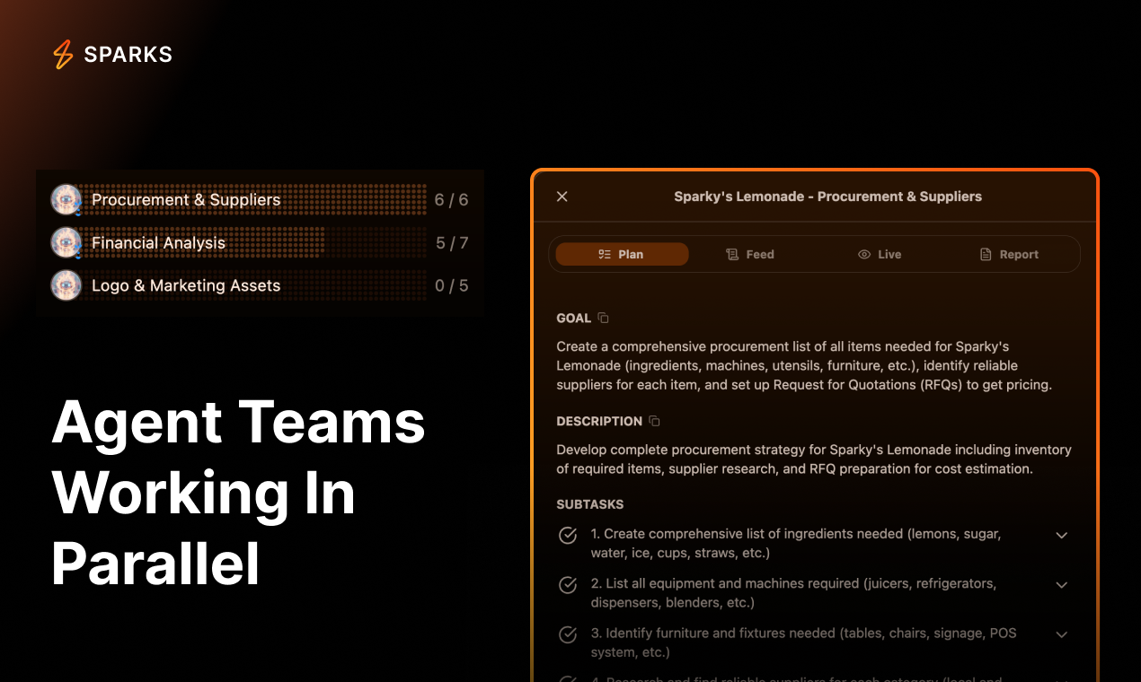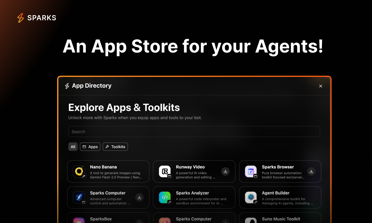 Sparks AIは、ユーザーが複数のAIモデルやツールを組み合わせて、自分専用のエージェントを簡単に作成できるプラットフォームです。このプロダクトは、コーディングなしでカスタムエージェントを数秒で生成できる点が高く評価されています。
