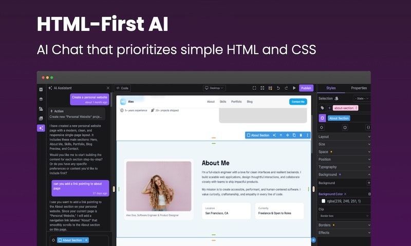 AI-powered, HTML-first, drag & drop website & email builder