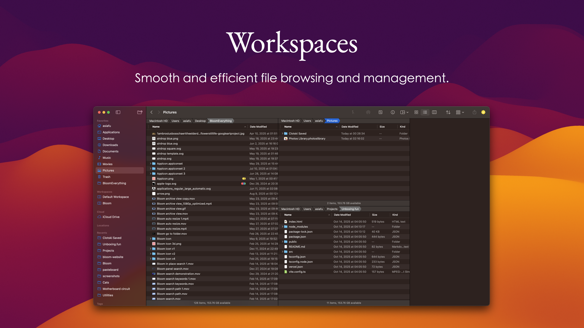 「Bloom」は、Finderの代替として設計された現代的なファイル管理ツールで、多機能なマルチペインレイアウトやインライン検索、ポータルウィンドウなどを提供します。ユーザーからは、特にパワーユーザーにとっての使いやすさやカスタマイズ性が評価されており、ファイル移動や検索の不満を解消するために開発されたことが伝えられています。