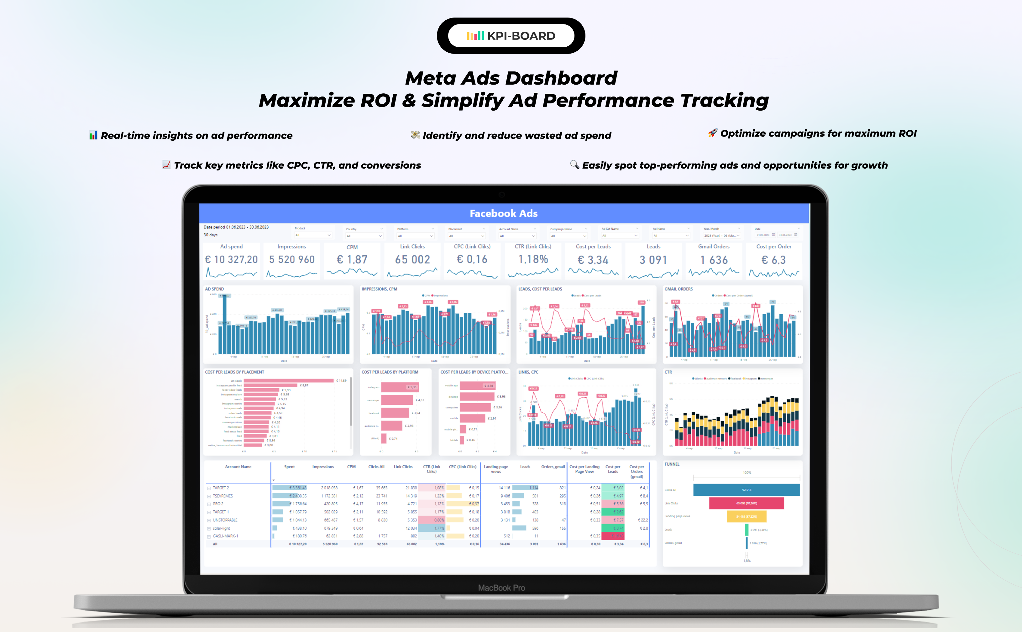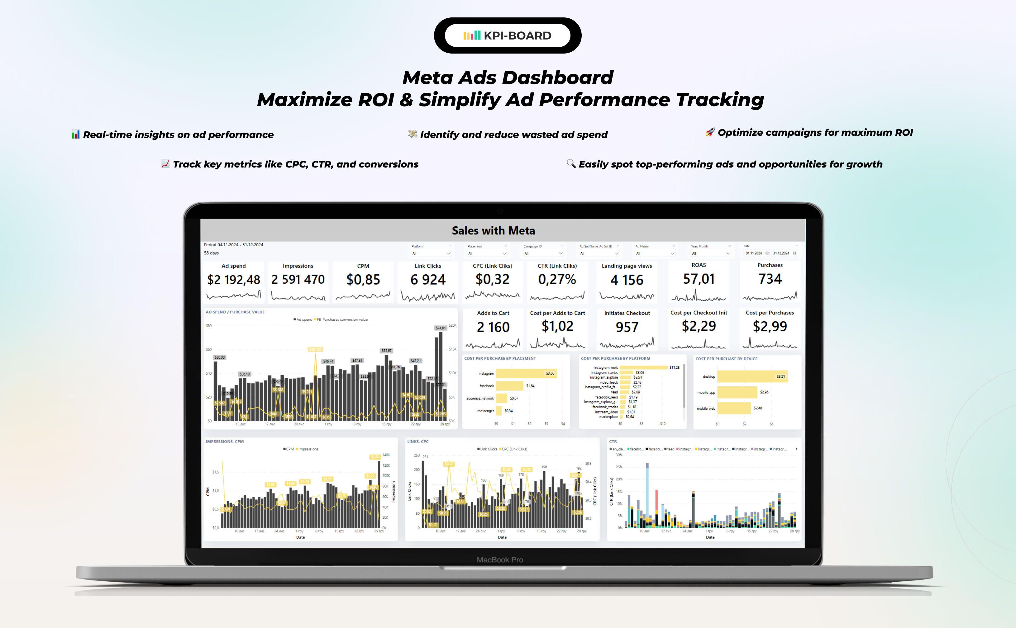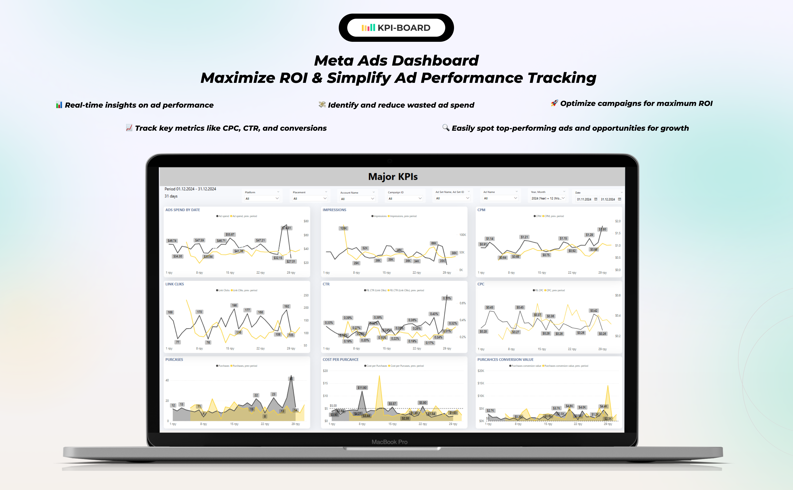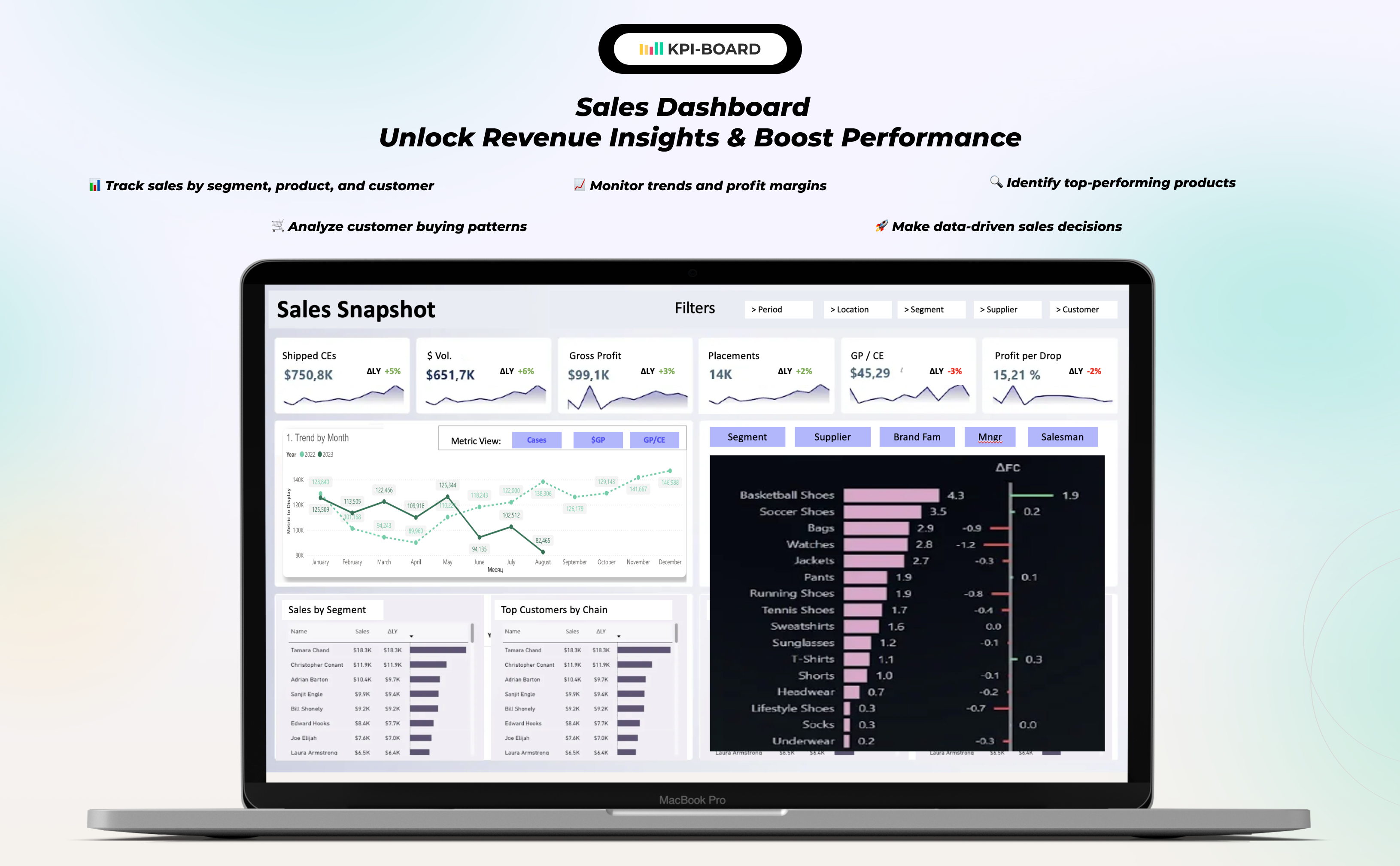 KPI BOARDは、報告の混乱を解消するために開発されたビジネスインテリジェンスツールで、手動ダッシュボードや不整合なツールに費やす時間を削減し、迅速なデータの統合と自動化を提供します。多くのクライアントが数日で効果を実感できる点が高く評価されています。