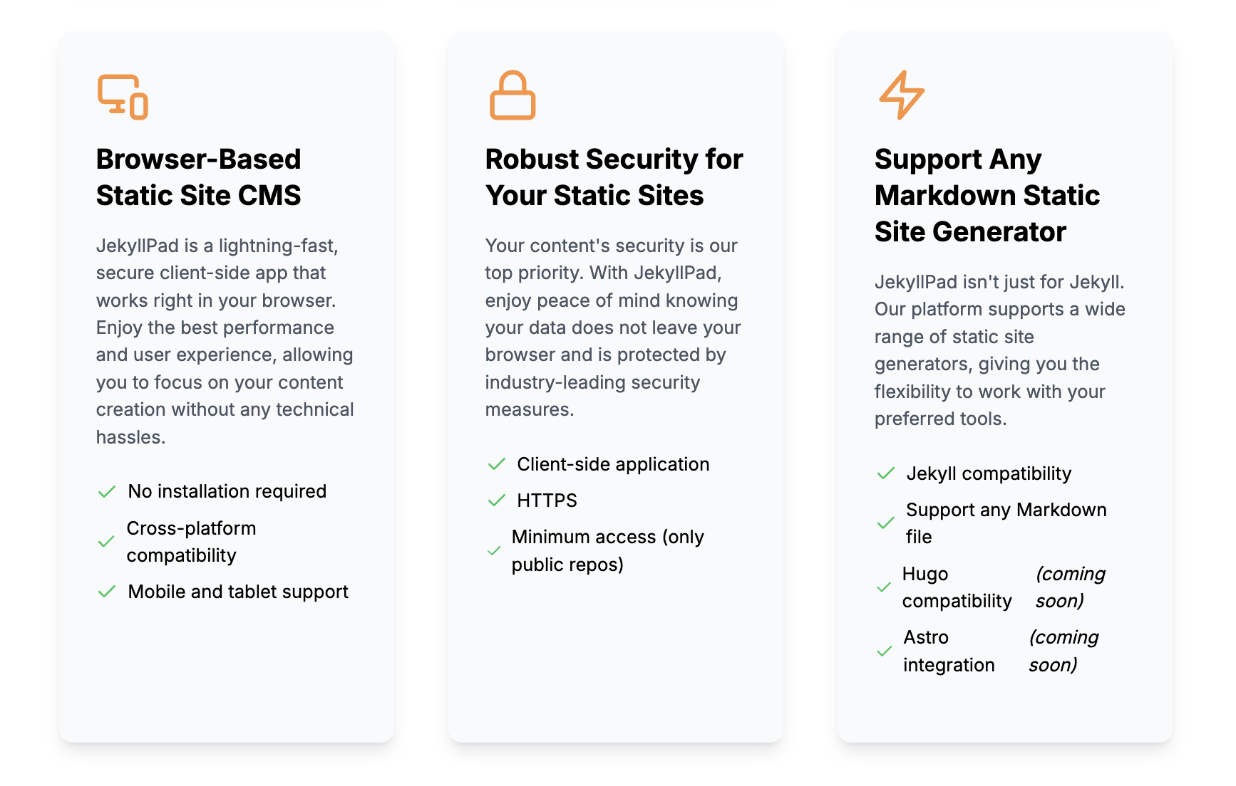 「JekyllPad」は、GitHubを通じて静的サイトを簡単に編集できるツールで、ブラウザ上で動作し、バックエンドの設定や依存関係なしにMarkdownやHTMLの編集が可能です。ユーザーは、画像のアップロードもスムーズに行え、Jekyllサイトの管理を非常に簡単にしています。