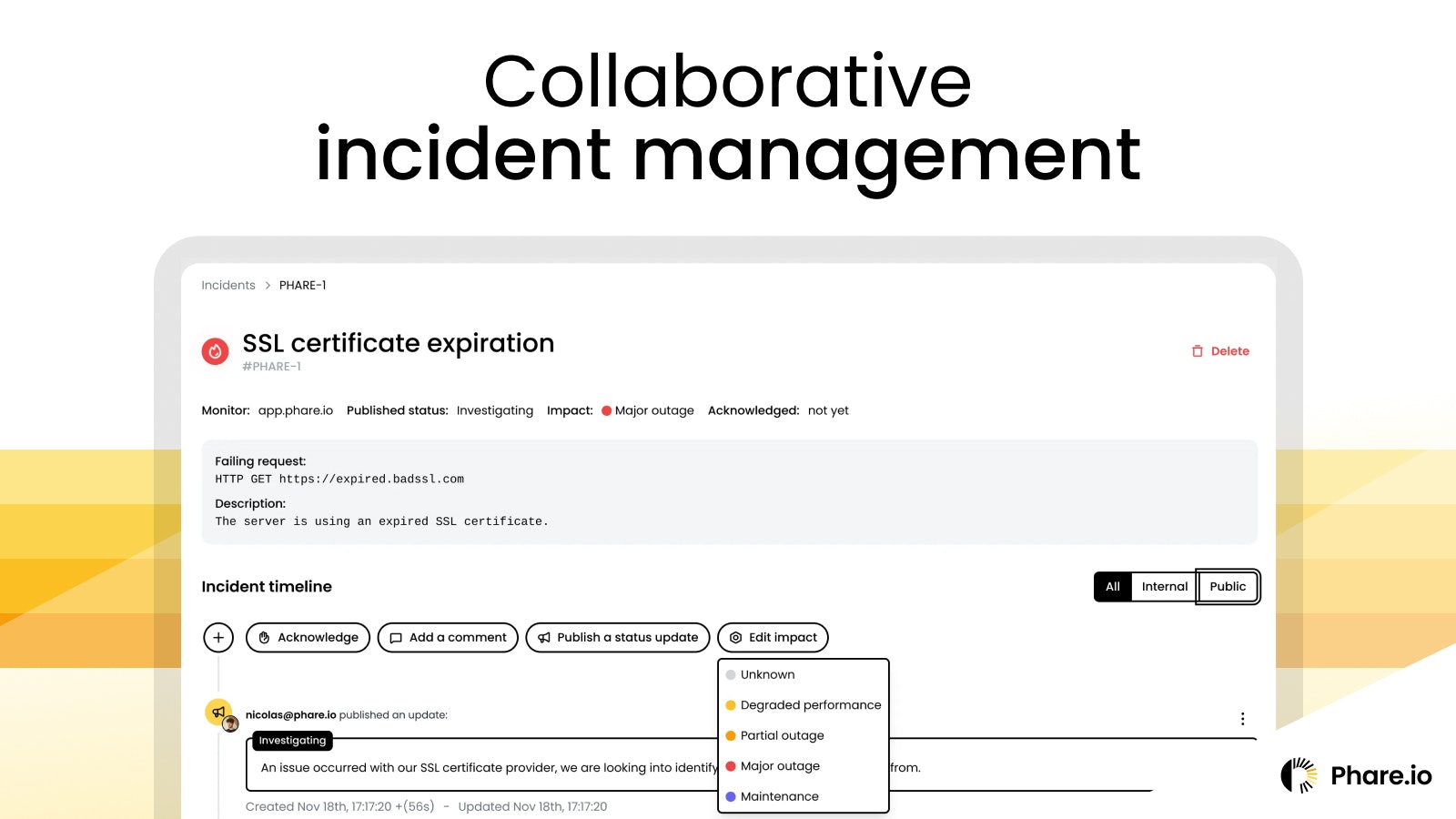 「Phare Incident AI」は、インシデントの自動要約やマージ機能を備え、ユーザーの時間を節約するツールです。新たに導入されたインシデントAIは、障害後のレポート作成を自動化し、SSL監視機能やスレッド化された通知によって、コミュニケーションを整理します。また、複数のモニターにまたがるインシデントを一つにまとめることで、アラートノイズを軽減します。