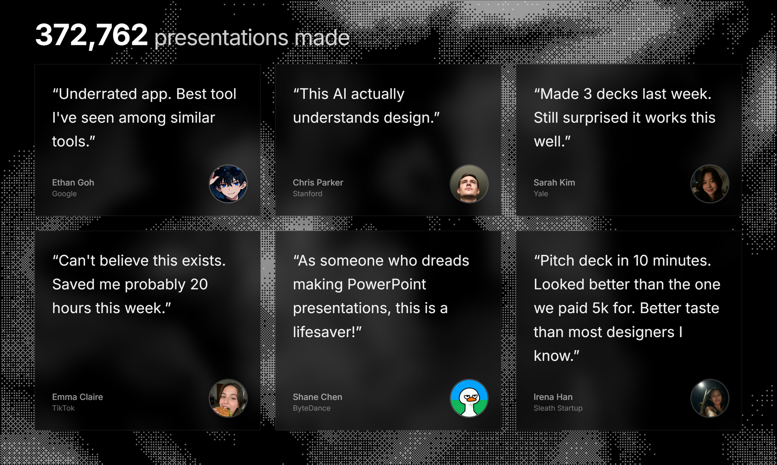 ユーザーからは、特にプレゼンテーションの準備を簡素化し、緊張を和らげる手助けになる点が高く評価されています。また、AIが自動でスクリプトを生成し、音声でのプレゼンテーションも可能なため、プレゼンターが自信を持ってメッセージを伝えられるという意見が目立ちました。