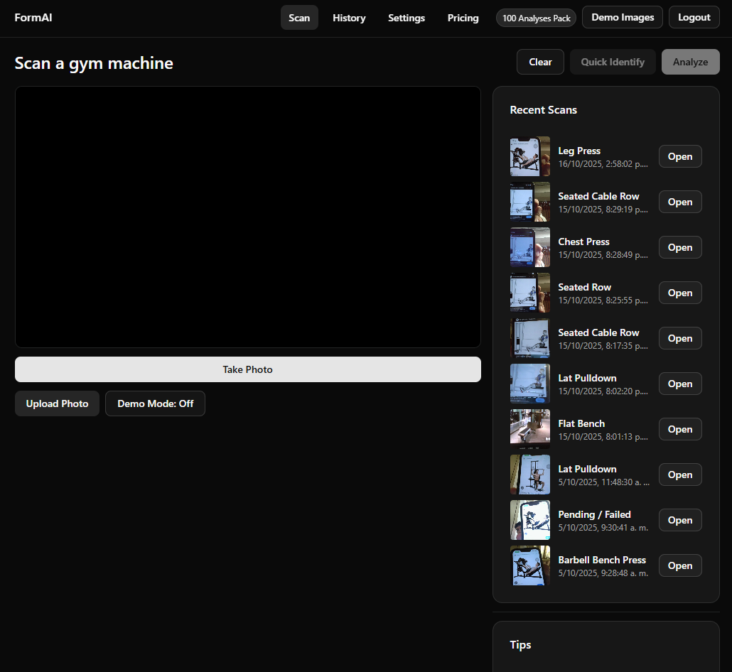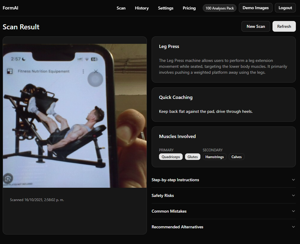 FormAIは、リアルタイムでユーザーのフォームを監視し、トレーニング中の誤った姿勢を指摘するAI搭載フィットネスアプリです。従来のフィットネスアプリと異なり、機械を特定し、怪我を未然に防ぐための具体的なアドバイスを提供します。