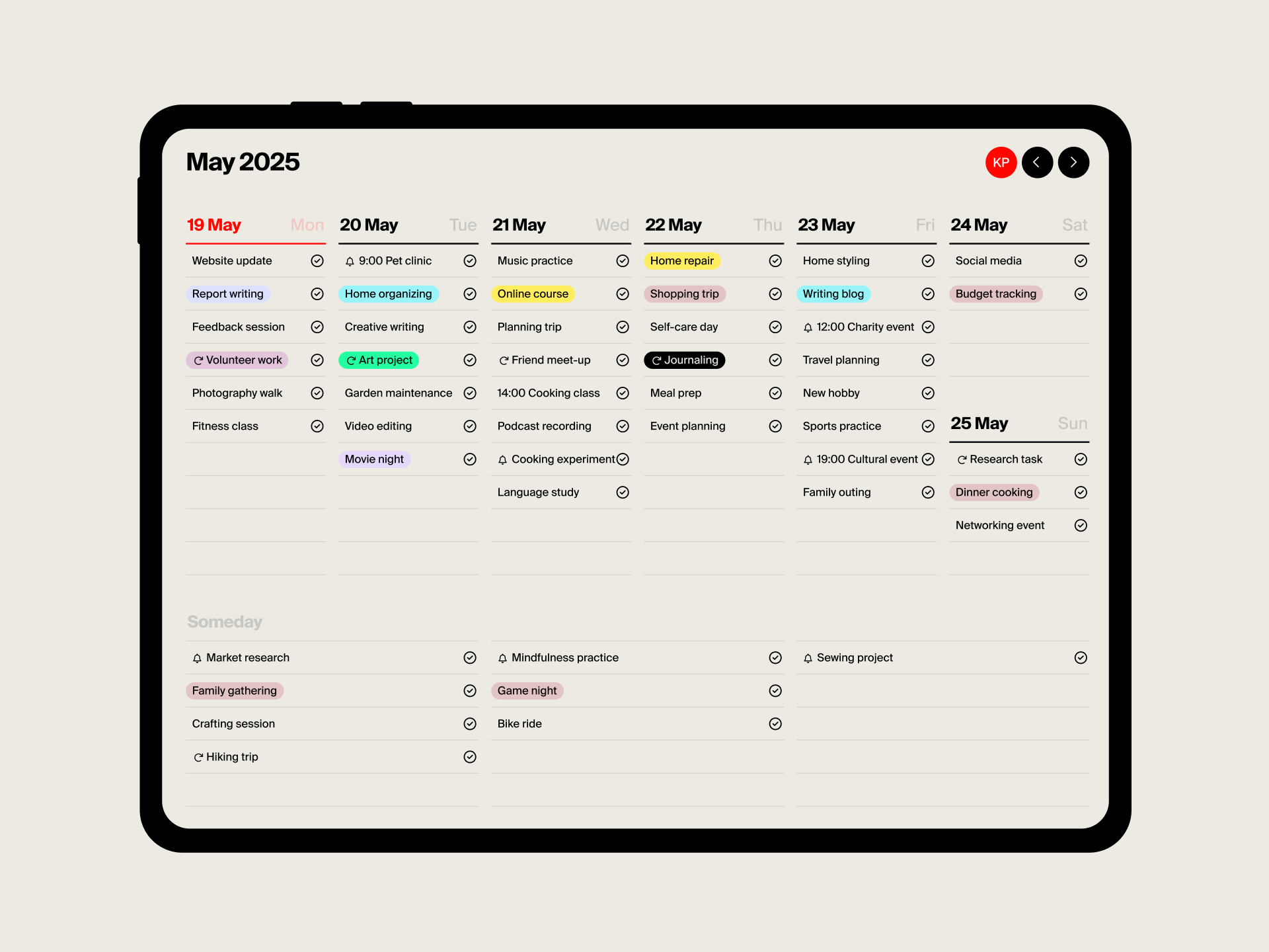 Minimal weekly planner