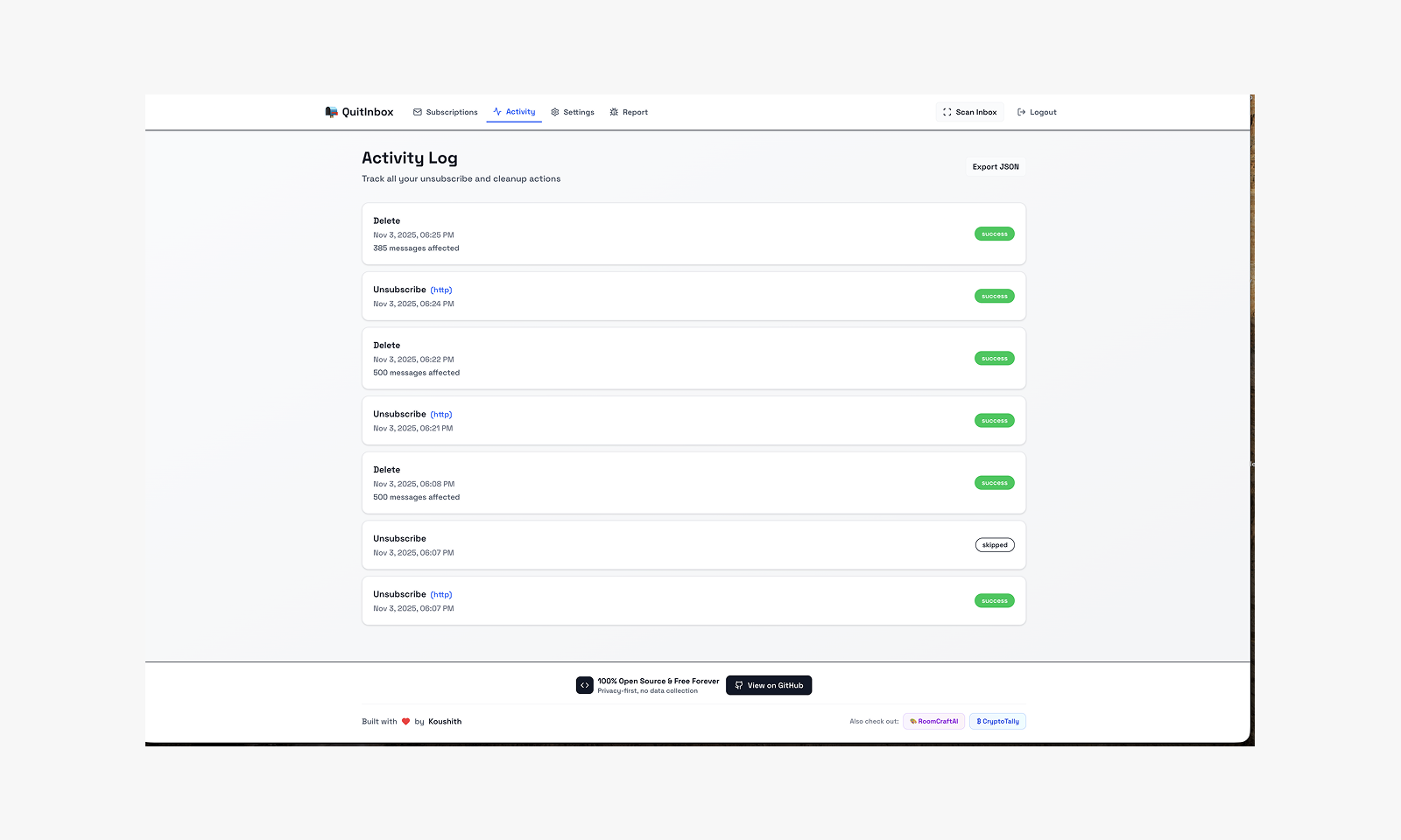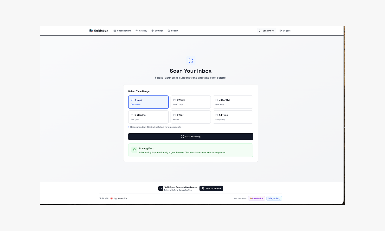 「QuiteInbox」は、ユーザーのGmailから安全にニュースレターを解除するためのローカルで動作するツールです。このプロダクトは、全ての処理がブラウザ内で行われ、データが外部サーバーに送信されないため、プライバシーが守られると好評です。