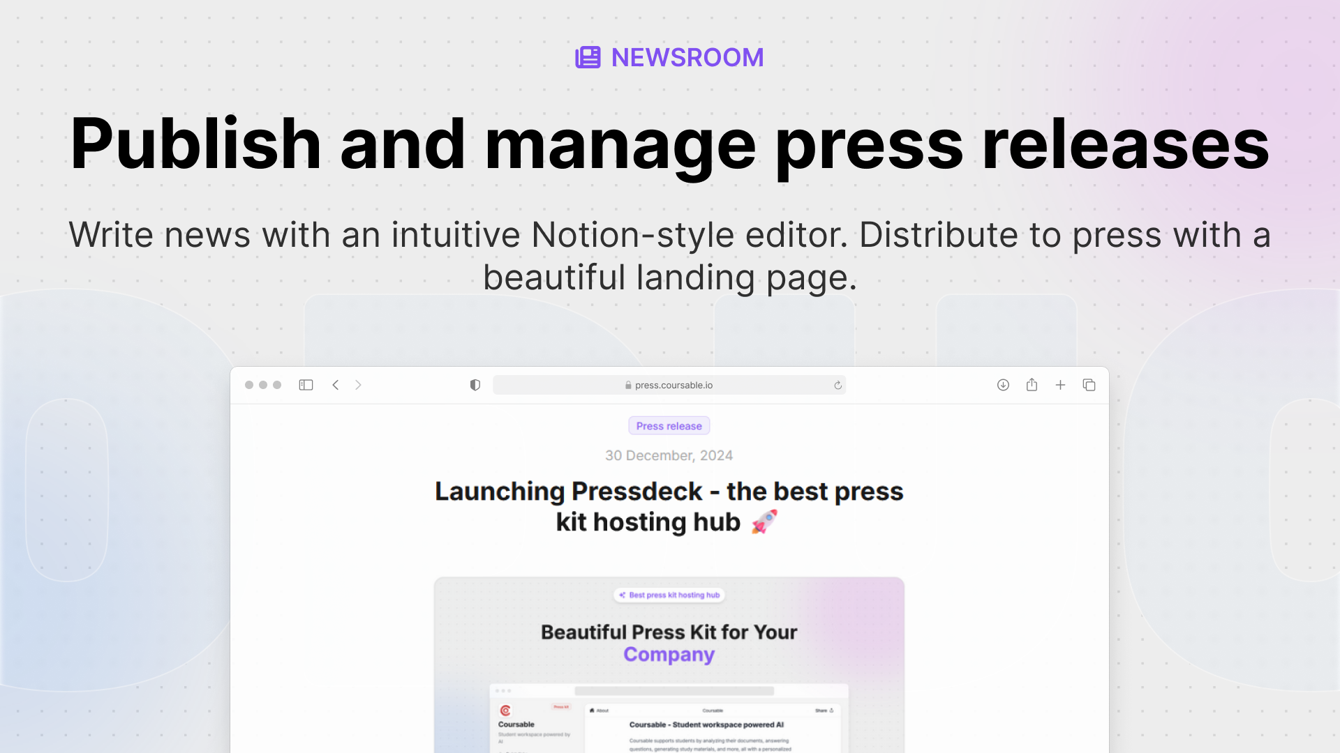 「Pressdeck」は、製品を効果的にプロモーションするためのオンラインプレスキット作成プラットフォームで、ジャーナリストやインフルエンサーに製品を知ってもらう手助けをします。