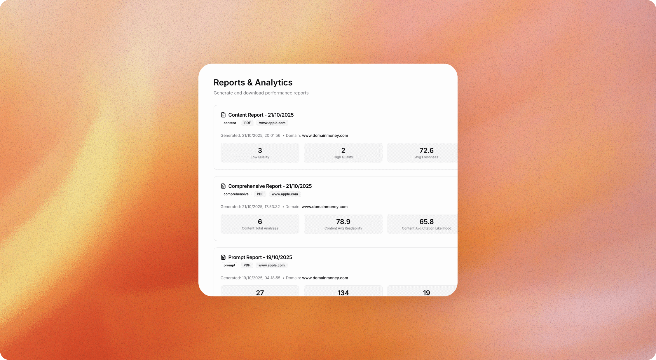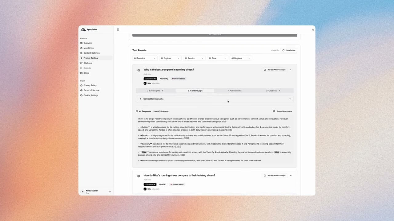 Apex Echo AIは、AIエンジンからのライブAPIを利用して、ドメインの評価や最適化を行うことができるエンタープライズ向けアプリです。ユーザーは、従来のAEOツールでは得られない正確な情報を得ることができるとの声が寄せられています。