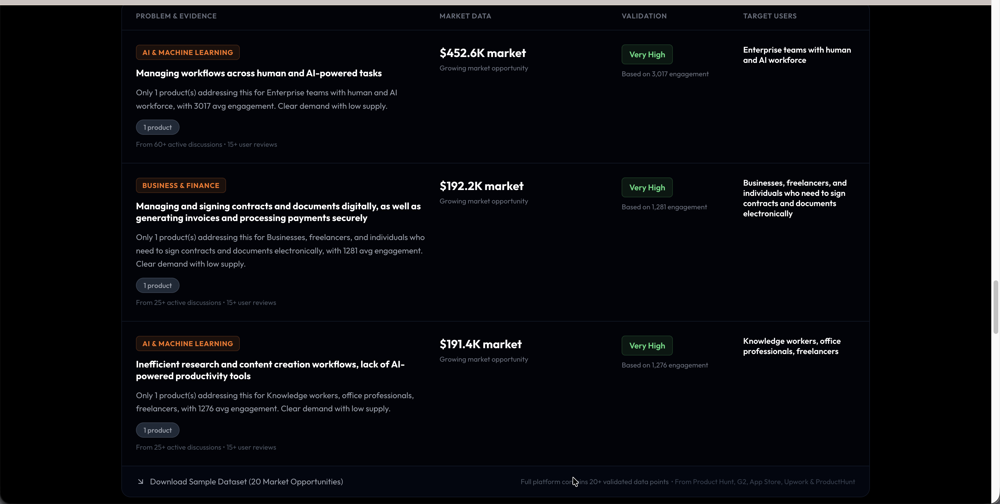 Use product hunt data to find ideas and opportunities
