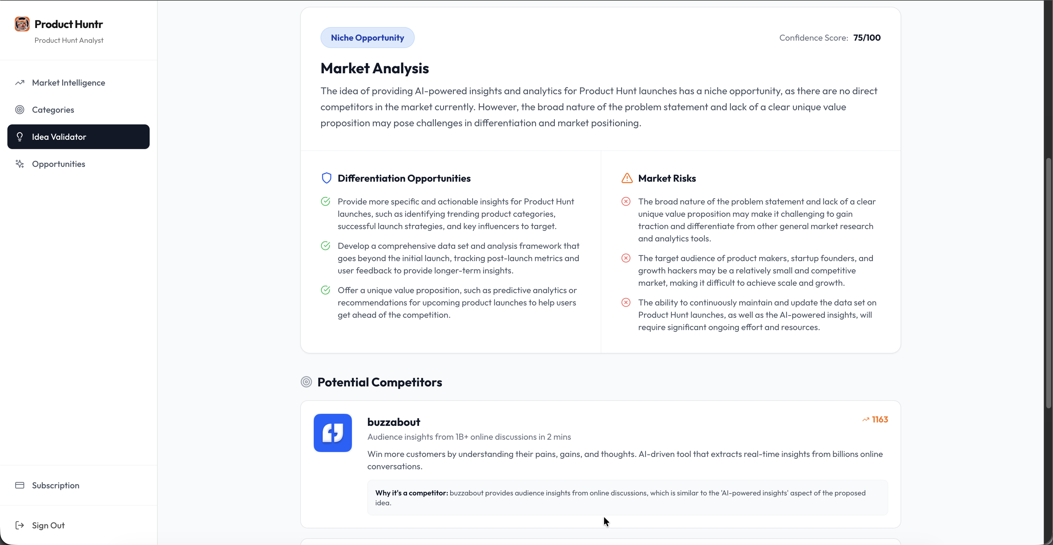 総じて、「Product Huntr」は便利な機能を提供しつつ、さらなる情報提供や商業化の計画が求められている状況です。