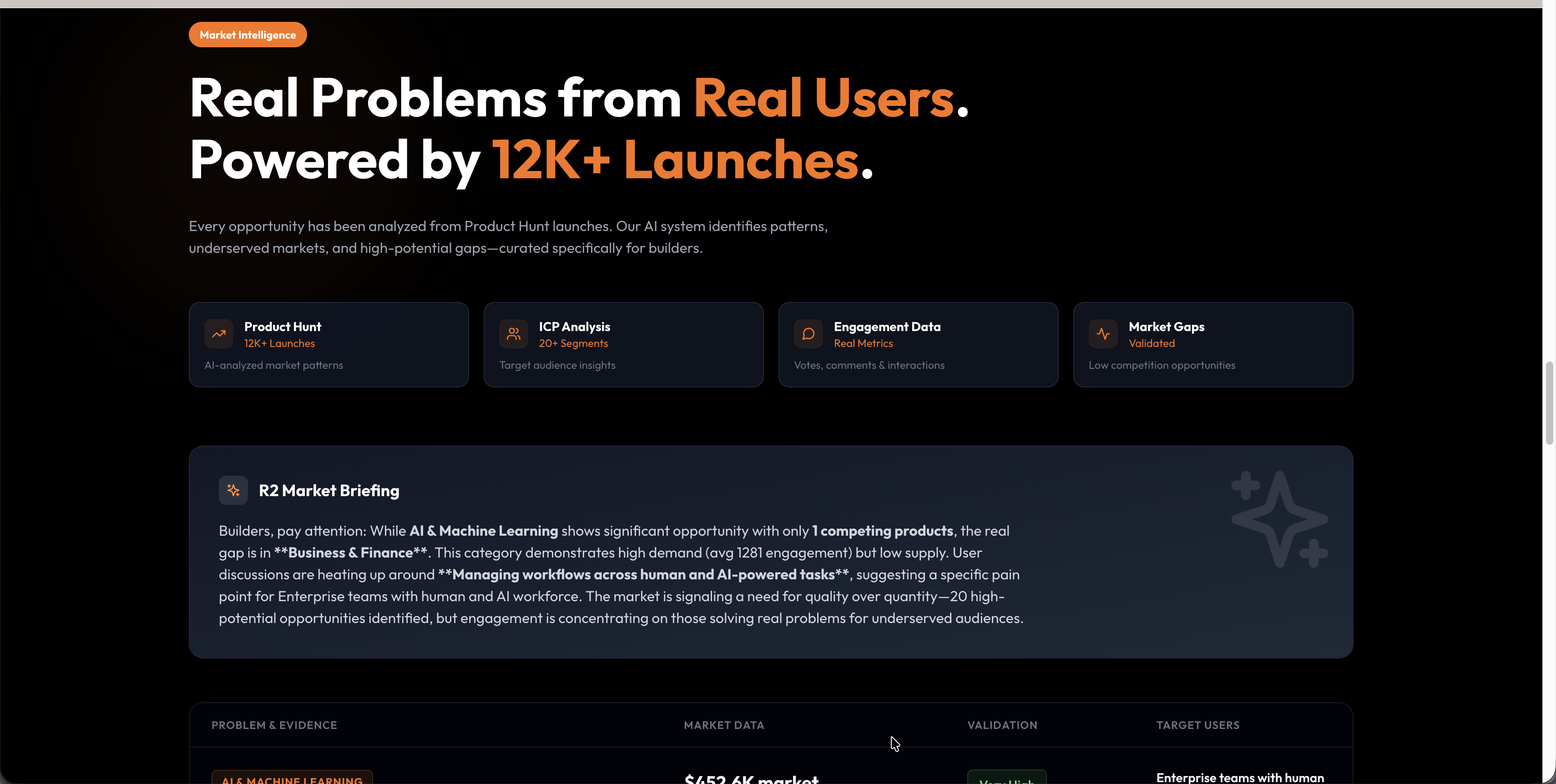 「Product Huntr」は、プロダクトローンチのデータを分析し、未開拓のビジネスチャンスを見つけるツールとして注目されています。ユーザーからは、手動で12,000件のローンチを確認する手間が省ける点や、魅力的なランディングページに対する好意的な反応が多く見られました。