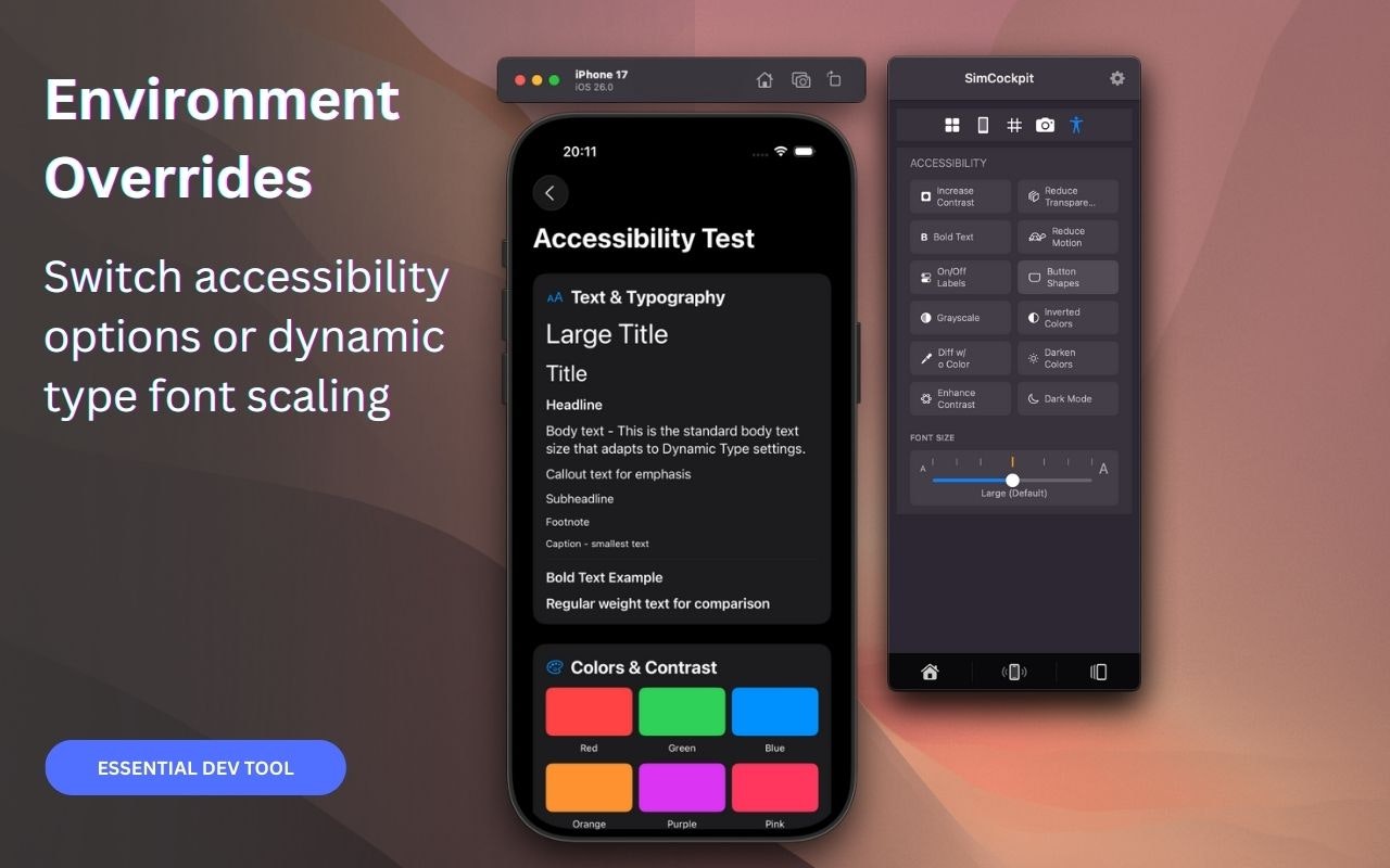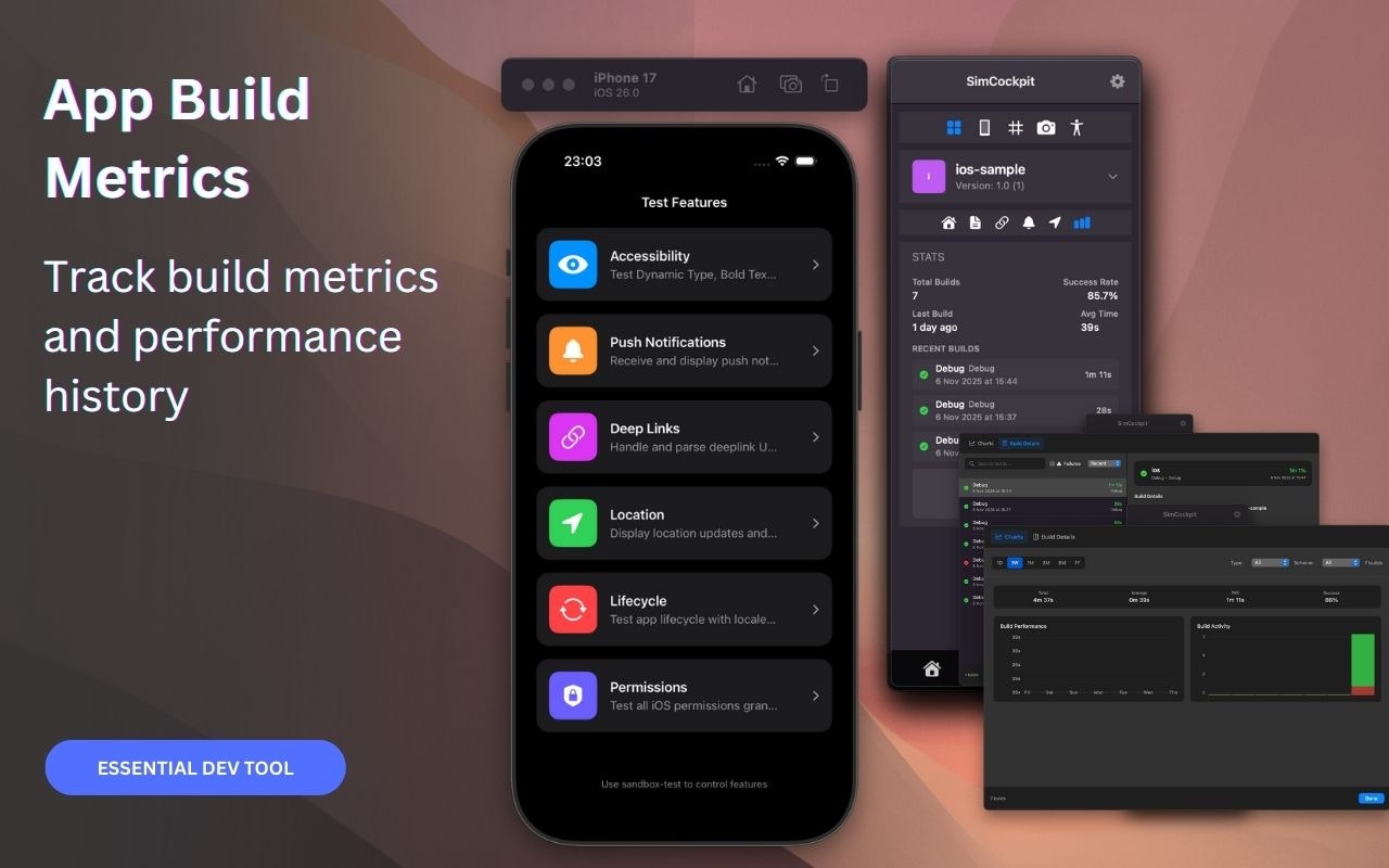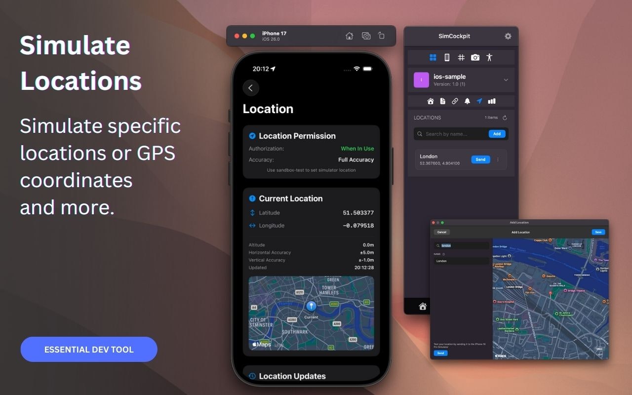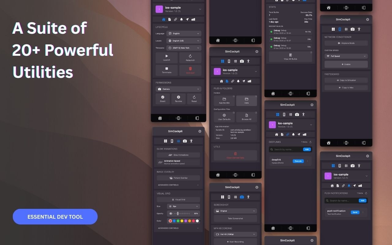 「SimCockpit」は、iOS開発者のために設計されたツールで、シミュレーターの作業効率を向上させるための視覚的インターフェースを提供します。ユーザーは、ネットワークの制御やデータ管理、環境設定などを簡単に行うことができ、従来のシミュレーター作業フローの煩雑さを解消します。