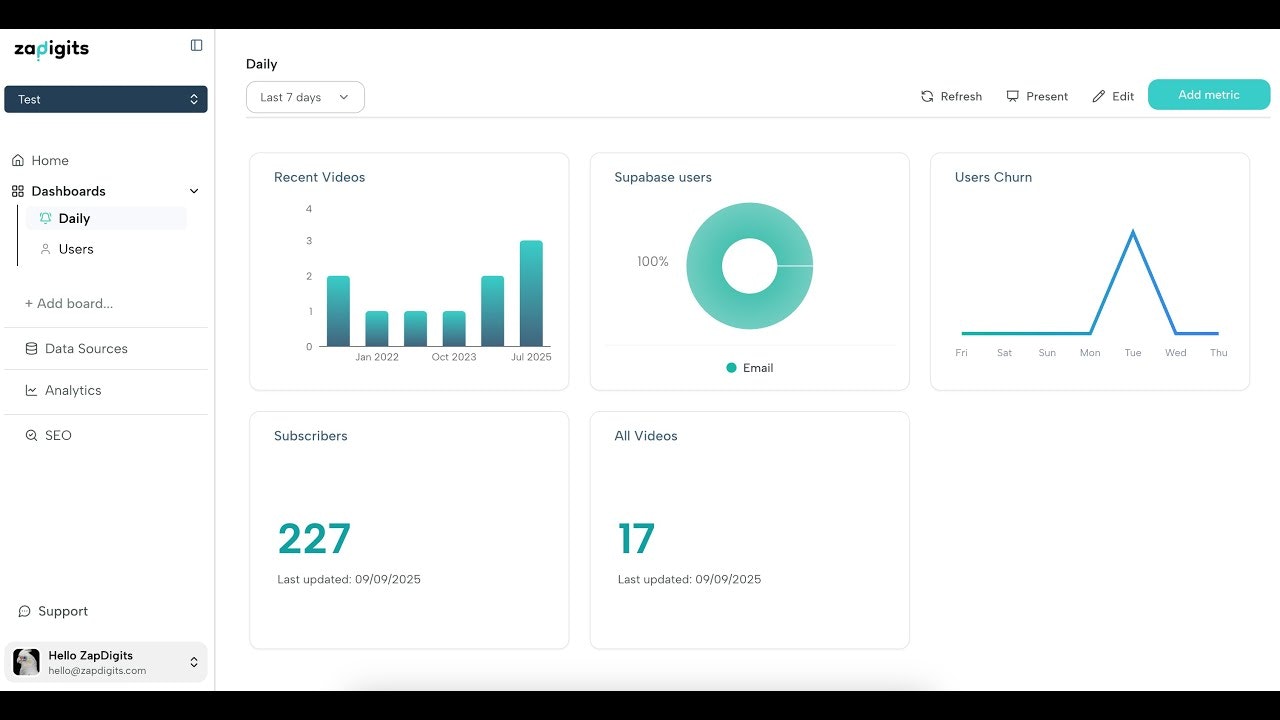 「ZapDigits」は、マーケティングチームや代理店向けのオールインワンダッシュボードであり、Meta AdsやGoogle Adsなど20以上のツールと一度のクリックで接続でき、リアルタイムでマーケティングデータを表示します。これにより、散在するスプレッドシートや手動更新から解放され、クライアントへの報告もスムーズになります。