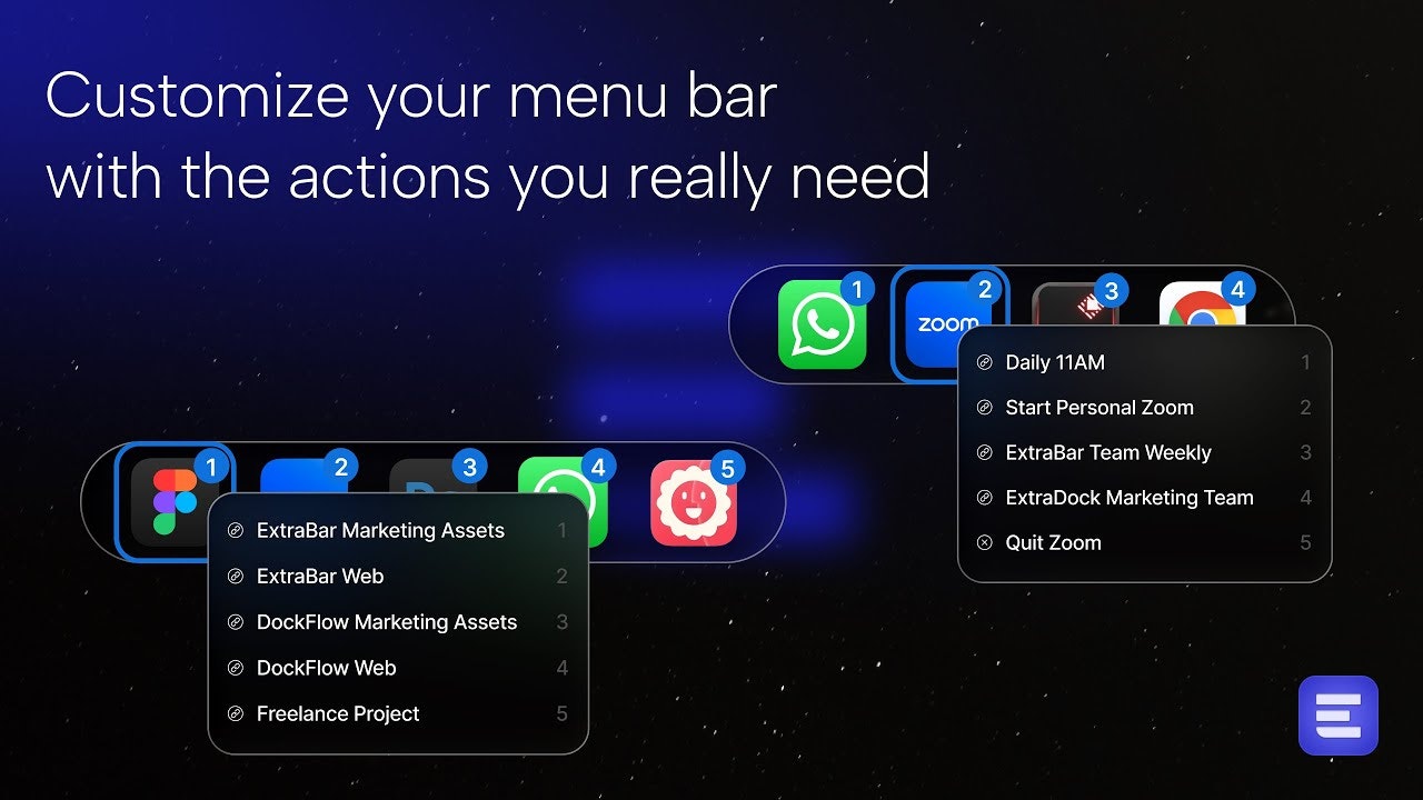 「ExtraBar」は、macOSのメニューバーを効率的に活用し、ZoomミーティングやSlackチャンネルなどへの迅速なアクセスを提供するアプリです。ユーザーからは、視覚的なダッシュボードが非常に便利で、特に複雑な自動化アクションを簡素化できる点が高く評価されています。