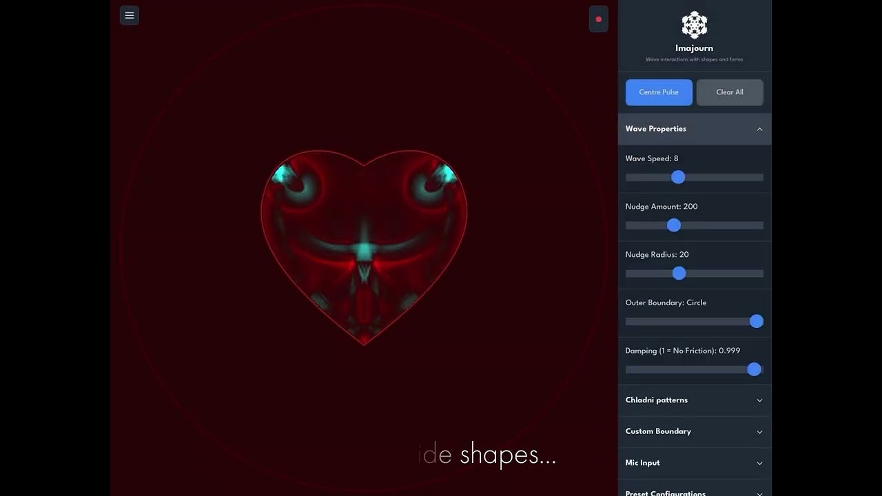 Imajournは、波と音の物理を体験できるインタラクティブなシミュレーションサンドボックスであり、アートや物理に興味のある人々にとって魅力的なデジタル空間を提供します。ユーザーは、音の周波数によって形成される美しいChladniパターンを観察しながら、エネルギーの流れを自由に操ることができます。