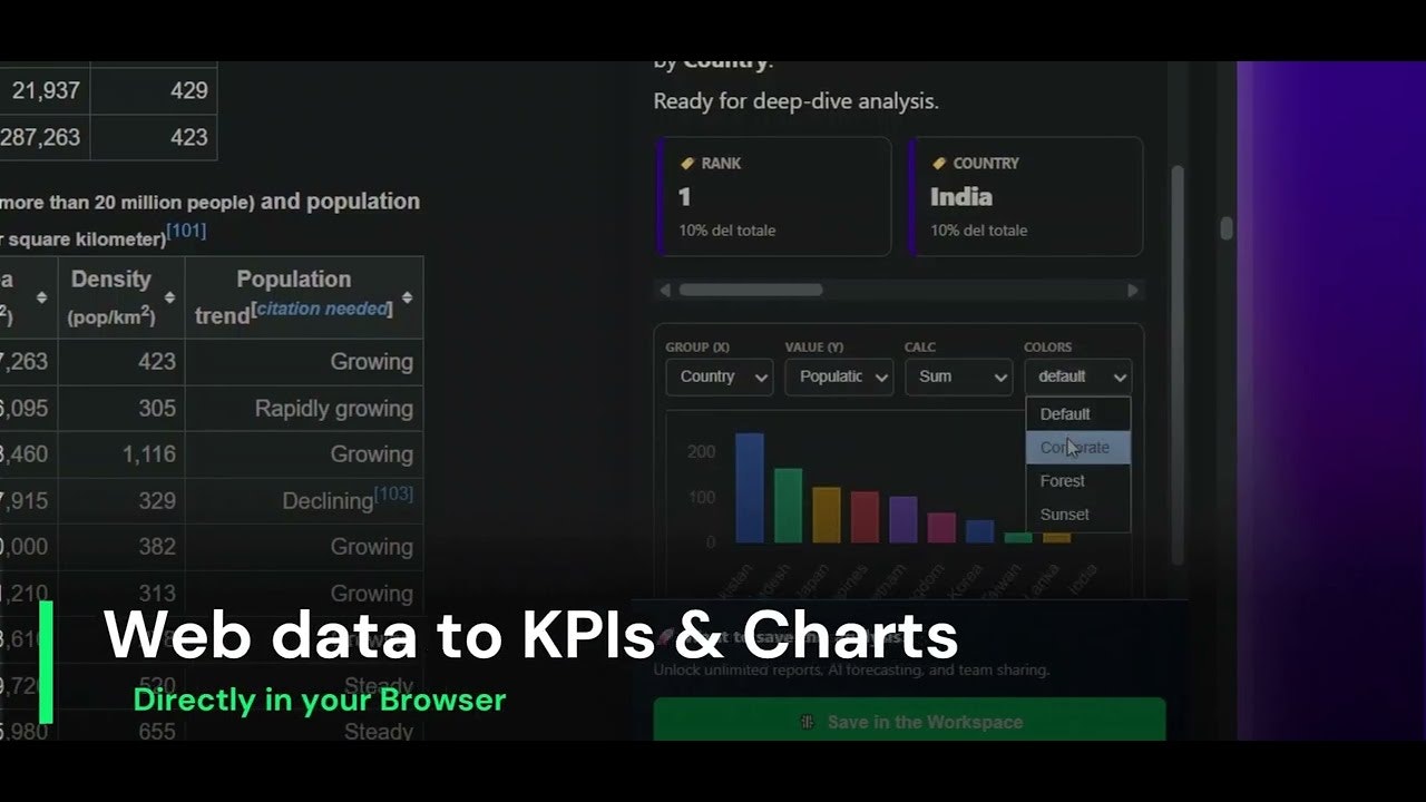 「Datastripes Lens」は、ウェブ上のデータを簡単に美しいインタラクティブなビジュアルに変換するブラウザ拡張機能です。ユーザーは、テーブルがあるページを閲覧すると小さな点が現れ、それをクリックするだけで様々なグラフが表示されます。このツールは、データを自動検出し、特別な設定なしで意味のあるチャートを提供するため、マーケティングや分析を行う人々にとって強力な助けとなります。