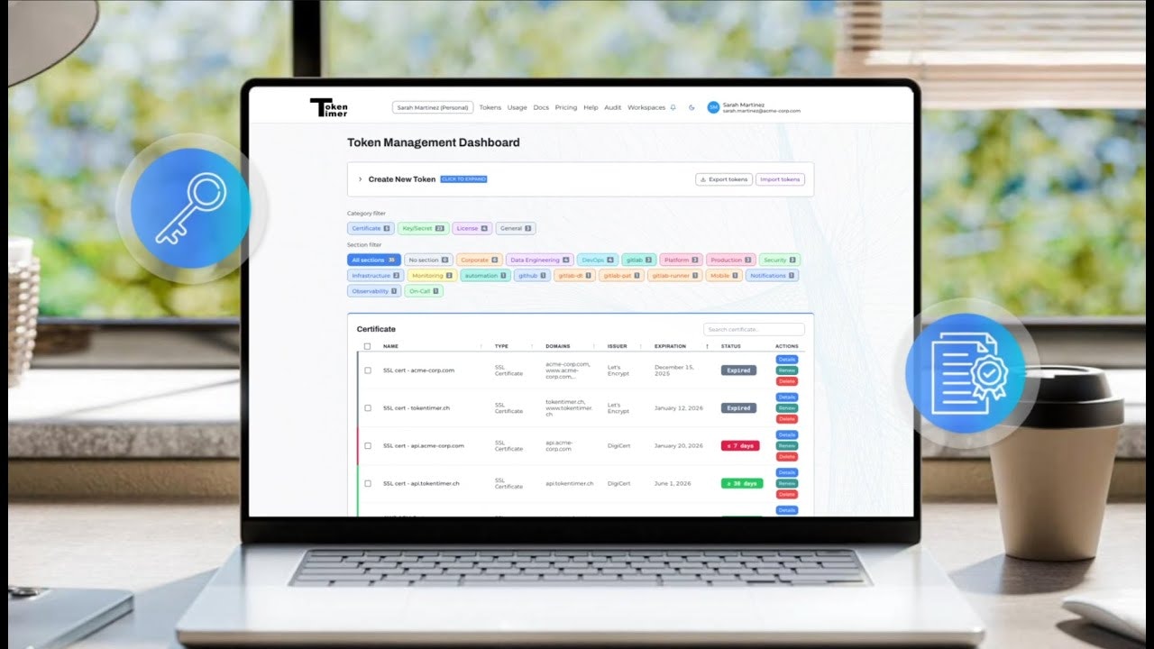 「TokenTimer」は、期限切れの資産を管理するためのプラットフォームで、チームが予防可能なインシデントを防ぐための明確な所有権や可視性を提供します。