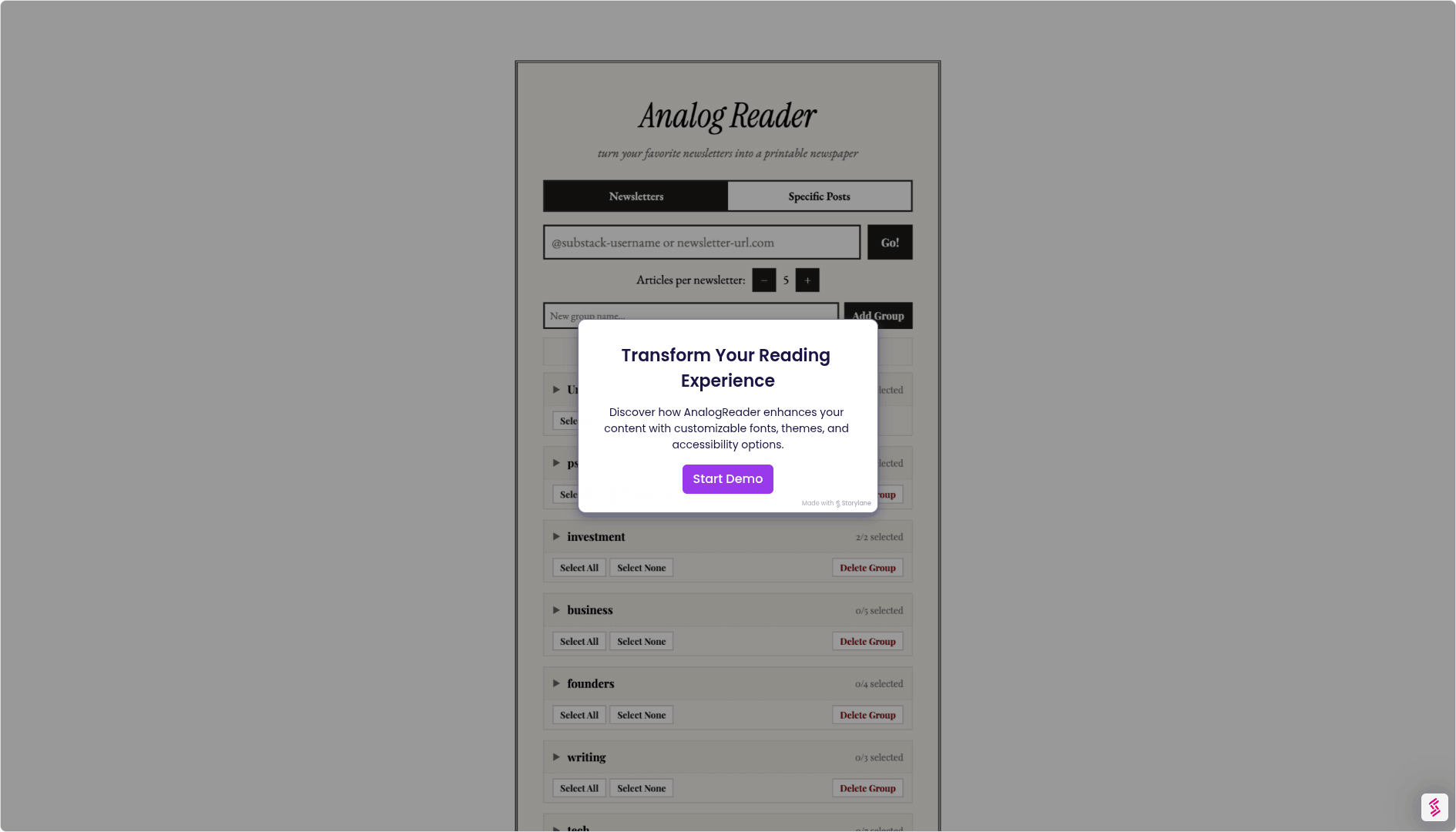 「Analog Reader」は、ニュースレターを印刷可能な新聞形式に変換するツールで、ユーザーは自分の読みたいコンテンツを選び、PDFとして生成し印刷できます。このプロダクトは、画面上の通知やソーシャルメディアによる気を散らされることなく、静かな環境でじっくりとコンテンツを楽しむことができる点が好評です。