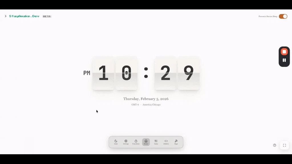 「StayAwake.Dev」は、コーディング中に集中を保つためのシンプルなウェブアプリで、時計やポモドーロタイマー、画面のウェイクロック、タスク管理などの機能を提供します。インストールやサインアップが不要で、常に開いておける一つのタブとして設計されています。