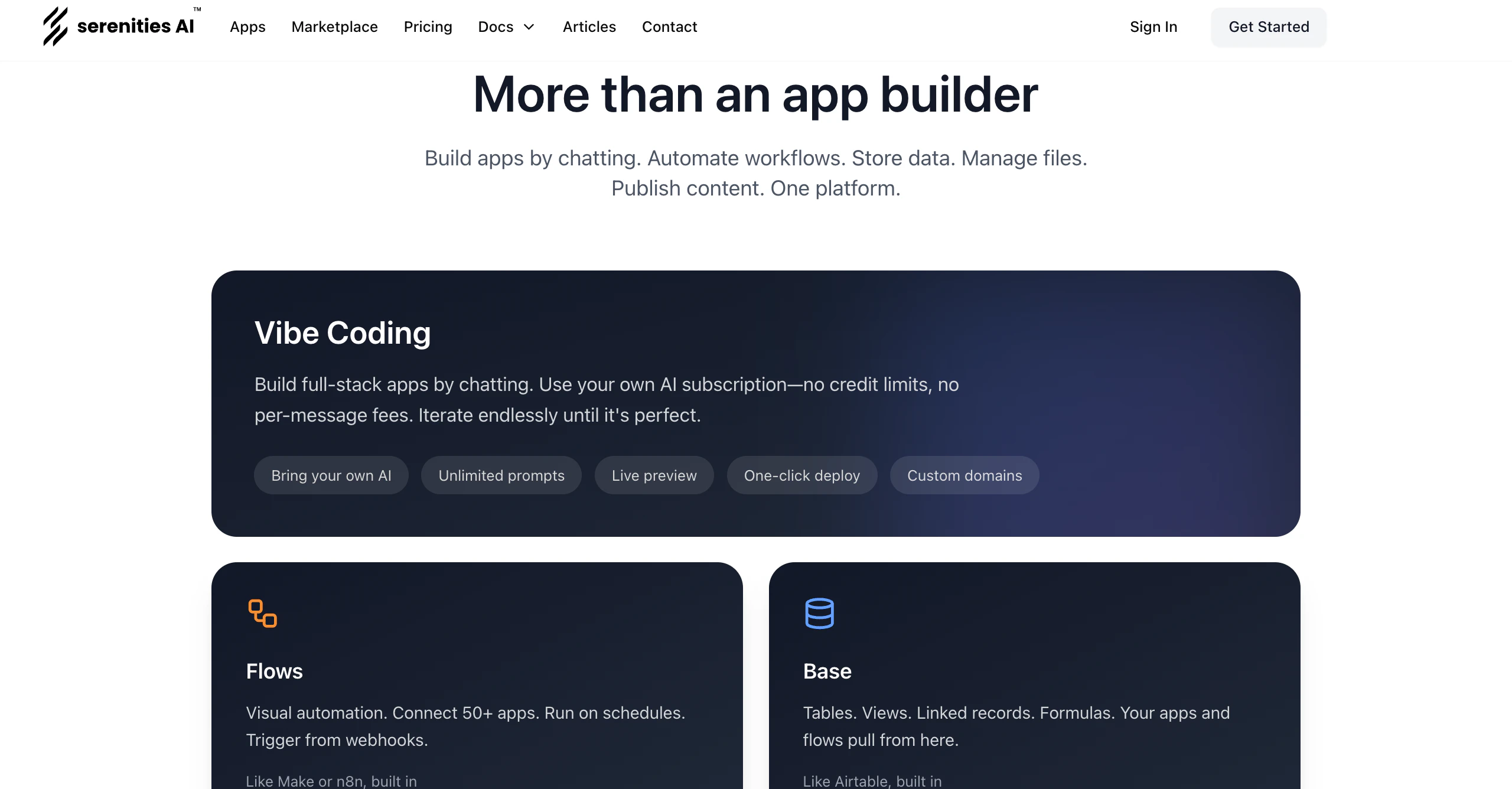 「serenities」は、ユーザーが自分のClaude/OpenAIサブスクリプションを利用することで、無制限のプロンプトやビルドを可能にするプラットフォームです。これにより、LovableやBolt.new、Replitなどでのメッセージ制限に悩まされることがなくなります。