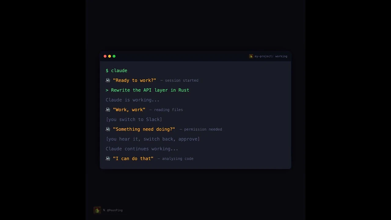 多くのコメントでは、PeonPingのフックベースのアプローチが評価されており、完了やエラー、承認が必要な場合に異なる音を使用することで、他の作業をしながらも状況を把握できる点が好評です。また、開発者たちはこのプロダクトを自身のユーティリティとして楽しんでおり、ユーザーからのフィードバックを歓迎しています。